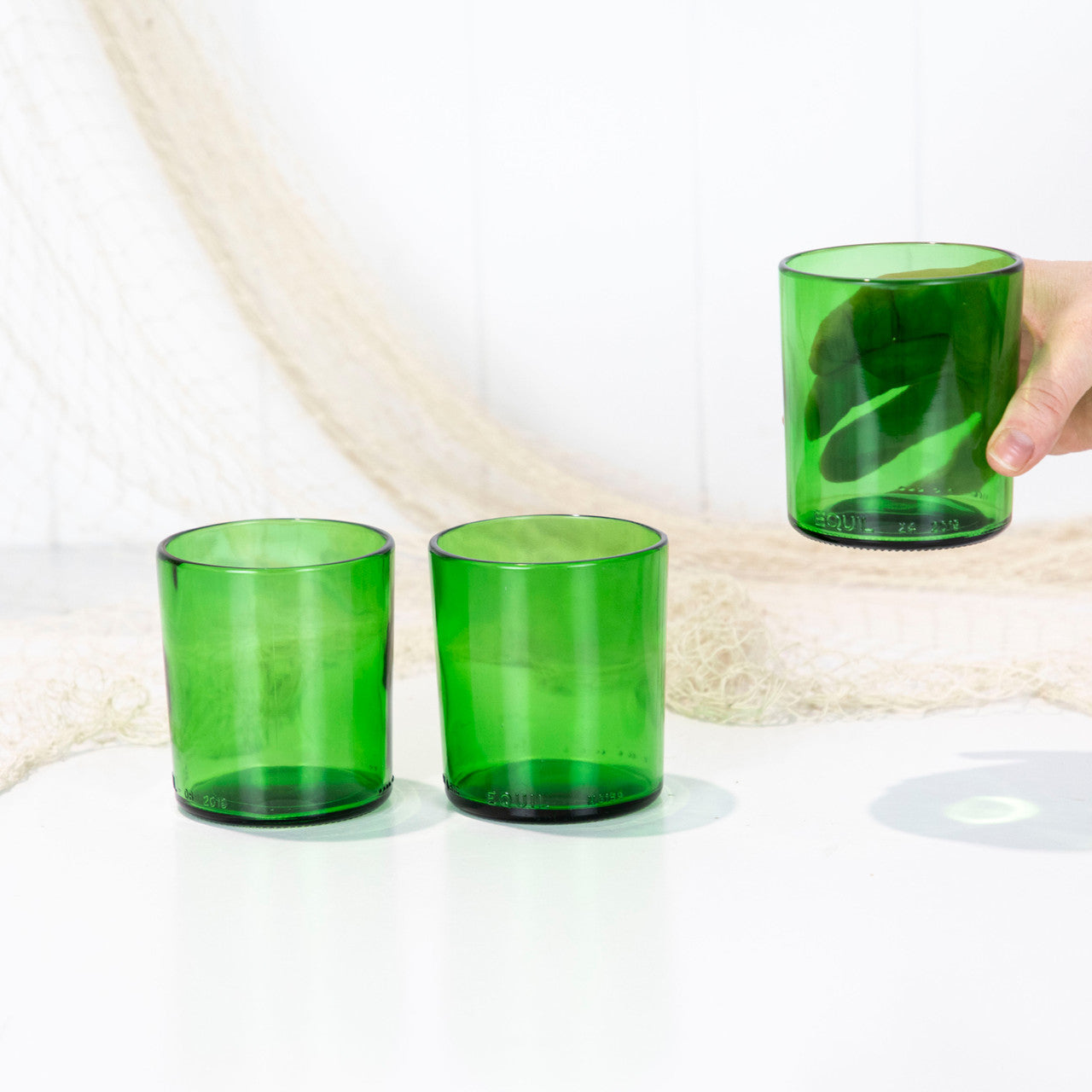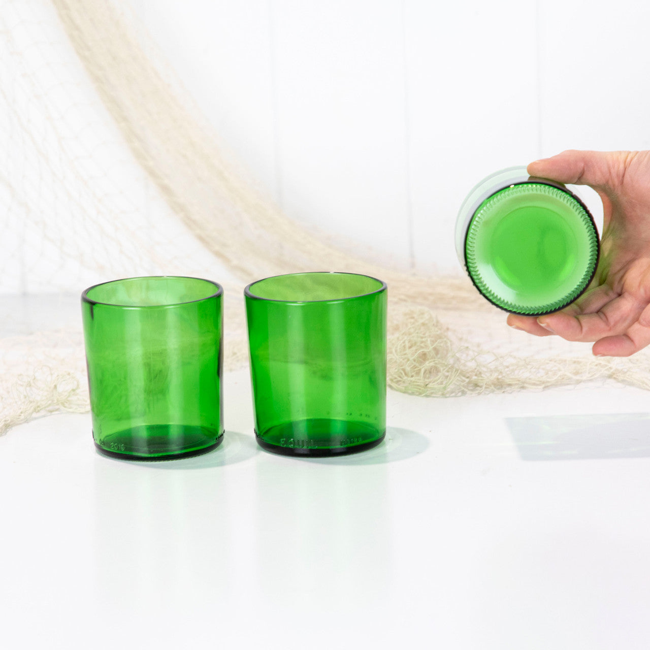 These fabulous green glasses have been made with recycled bottles by the Bali Street Mums.  These mothers used to beg on the streets of Kuta, Bali with their children and now have learnt a new trade making these fabulous glasses.