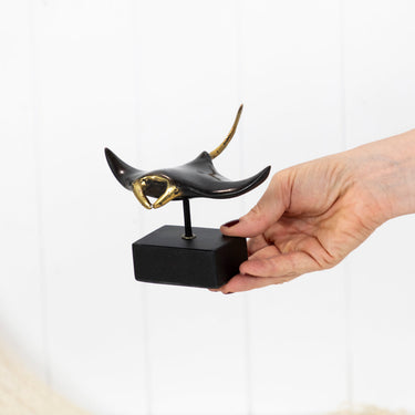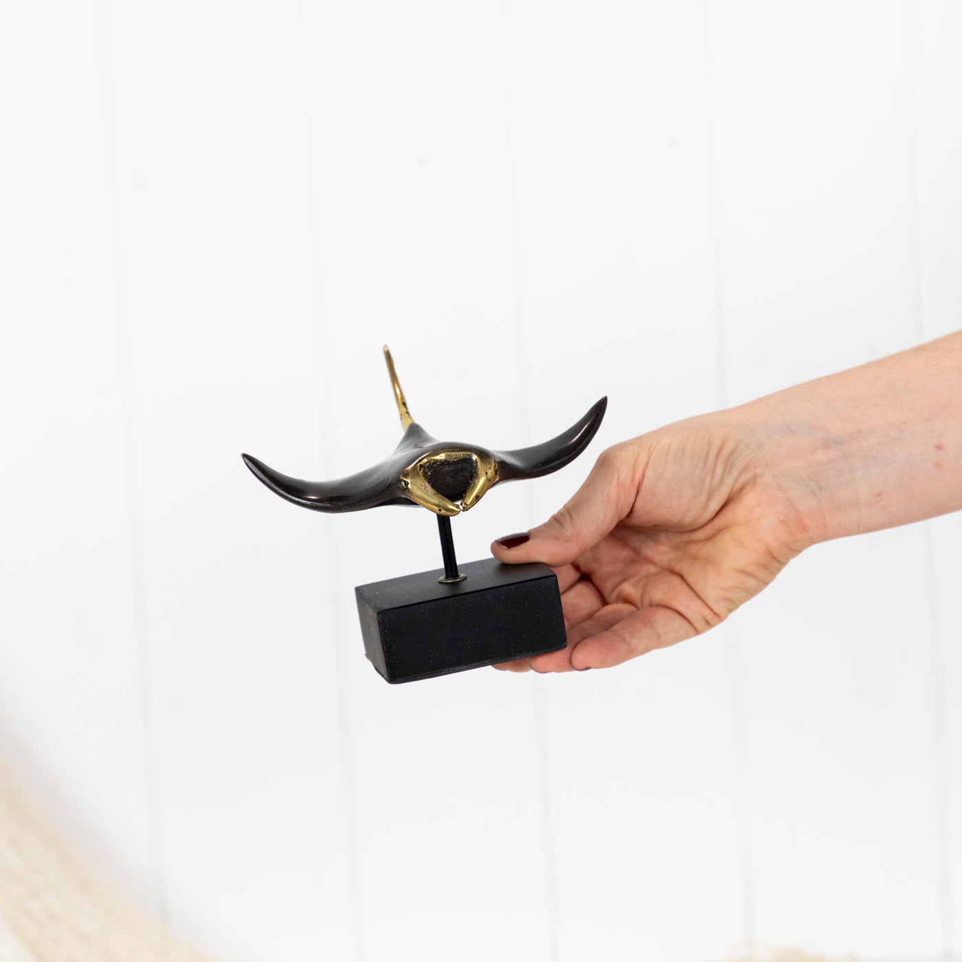 The brass has been darkened with details polished to a shine. Fitted to a custom made stand they are perfect to display on the sideboard or coffee table.