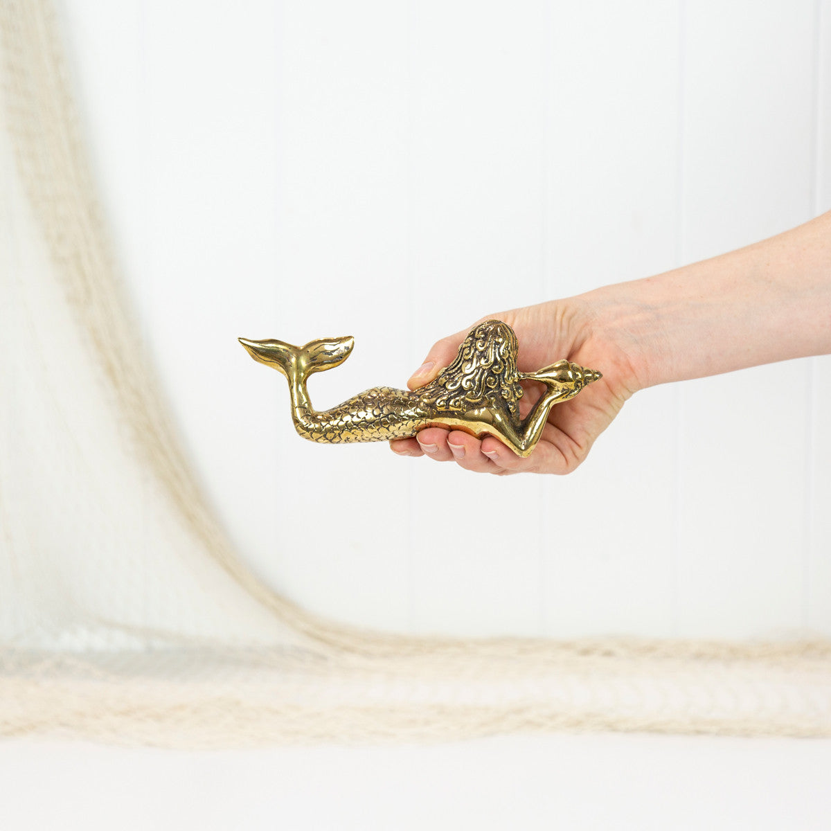 Beautifully detailed this brass mermaid would make a fabulous addition a coffee table or shelf.