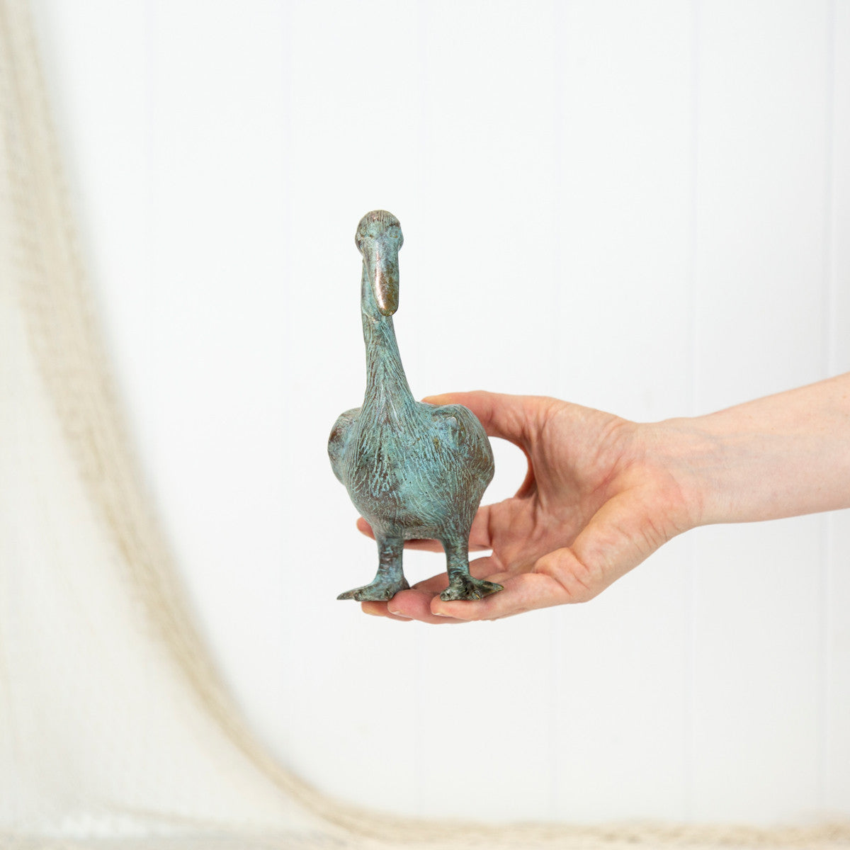 We have had this gorgeous pelican custom designed just for us. Made from brass it has been aged to bring on this gorgeous green patina.