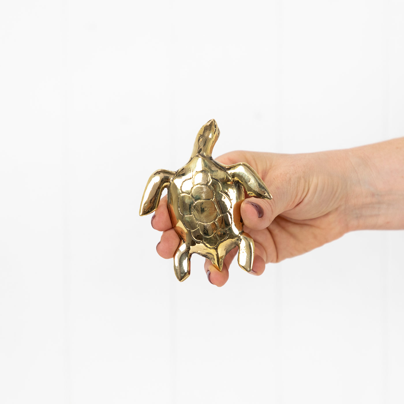 Beautifully detailed, the brass has been aged giving it a green patina. It would make a fabulous addition a coffee table or shelf.