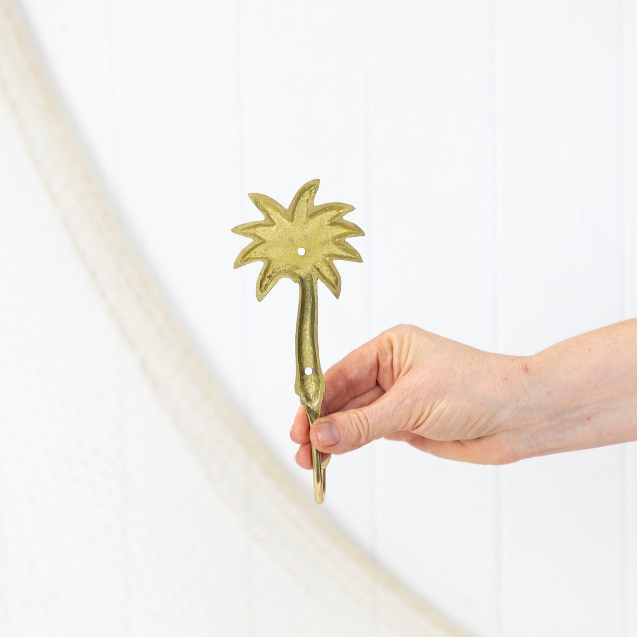 Palm tree brass hooks are perfect to display in the coastal style space.