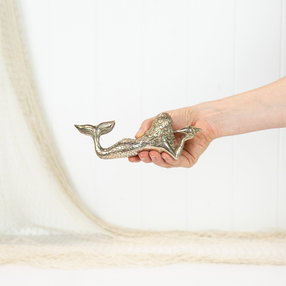 Beautifully detailed this chrome mermaid would make a fabulous addition a coffee table or shelf.