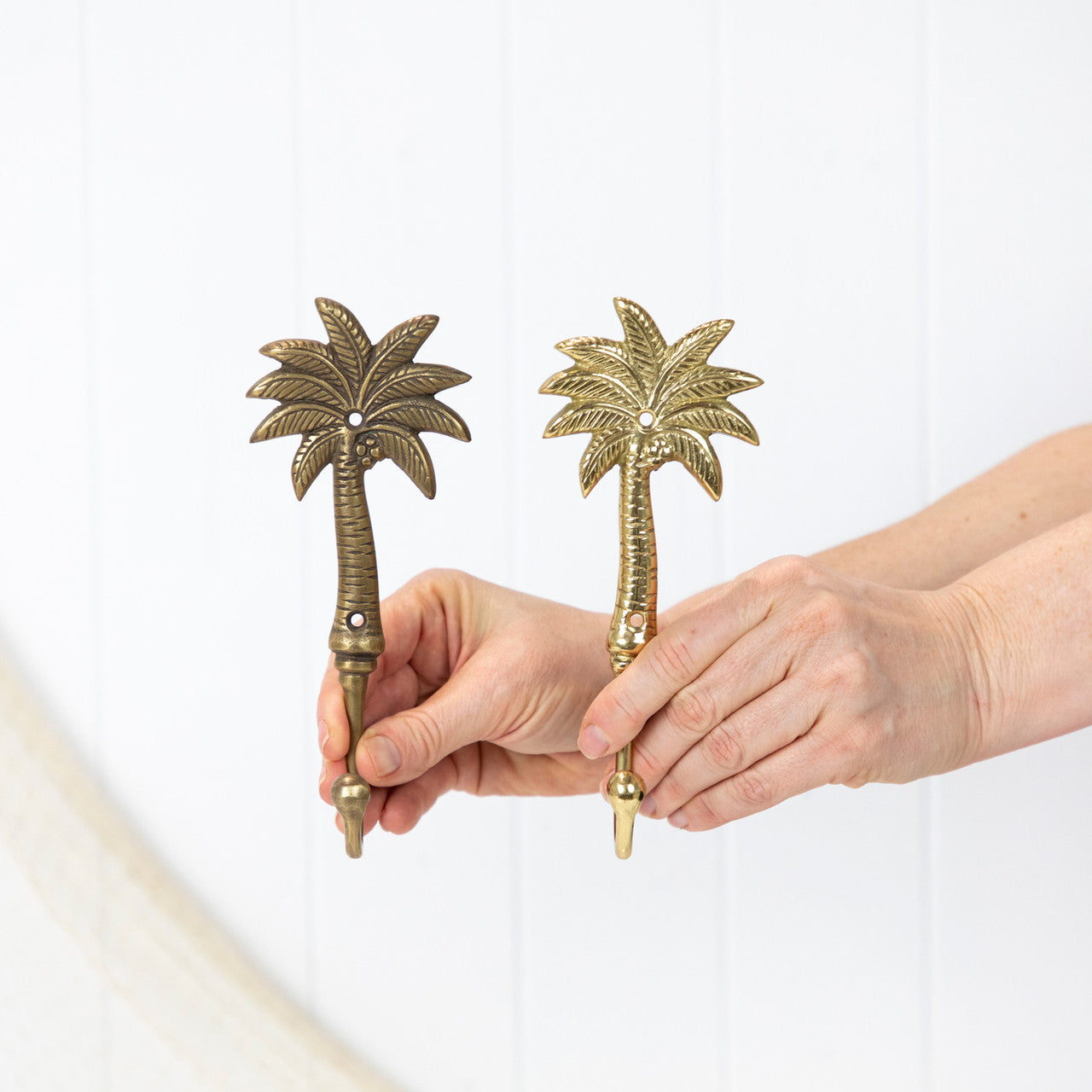 Palm tree brass hooks are perfect to display in the coastal style space.