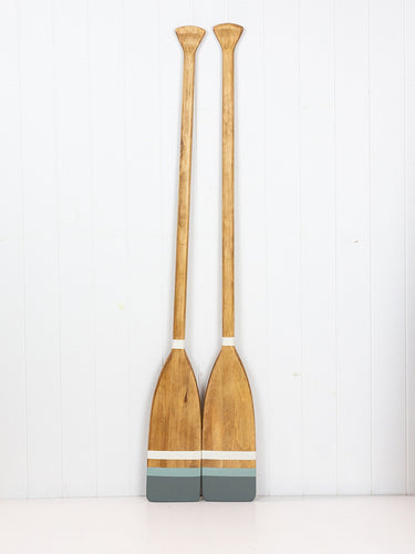 These paddles have been crafted from natural timber and then hand painted, so there may be slight variations in size, wood grain and detail from the pair photographed.