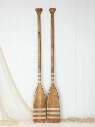 These paddles have been crafted from natural timber and then hand painted, so there may be slight variations in size, wood grain and detail from the pair photographed.