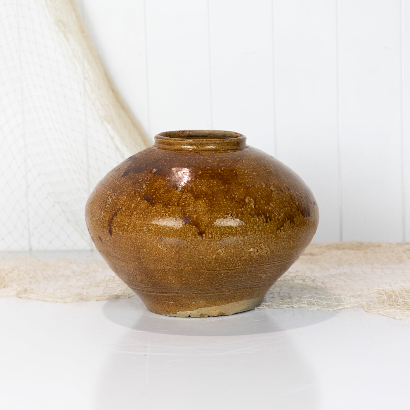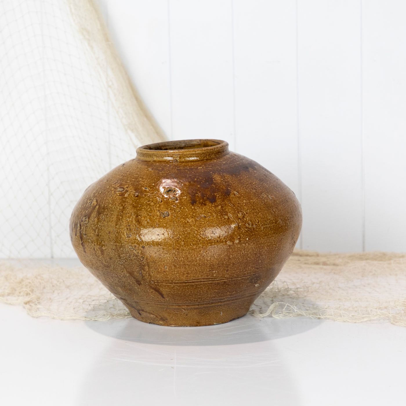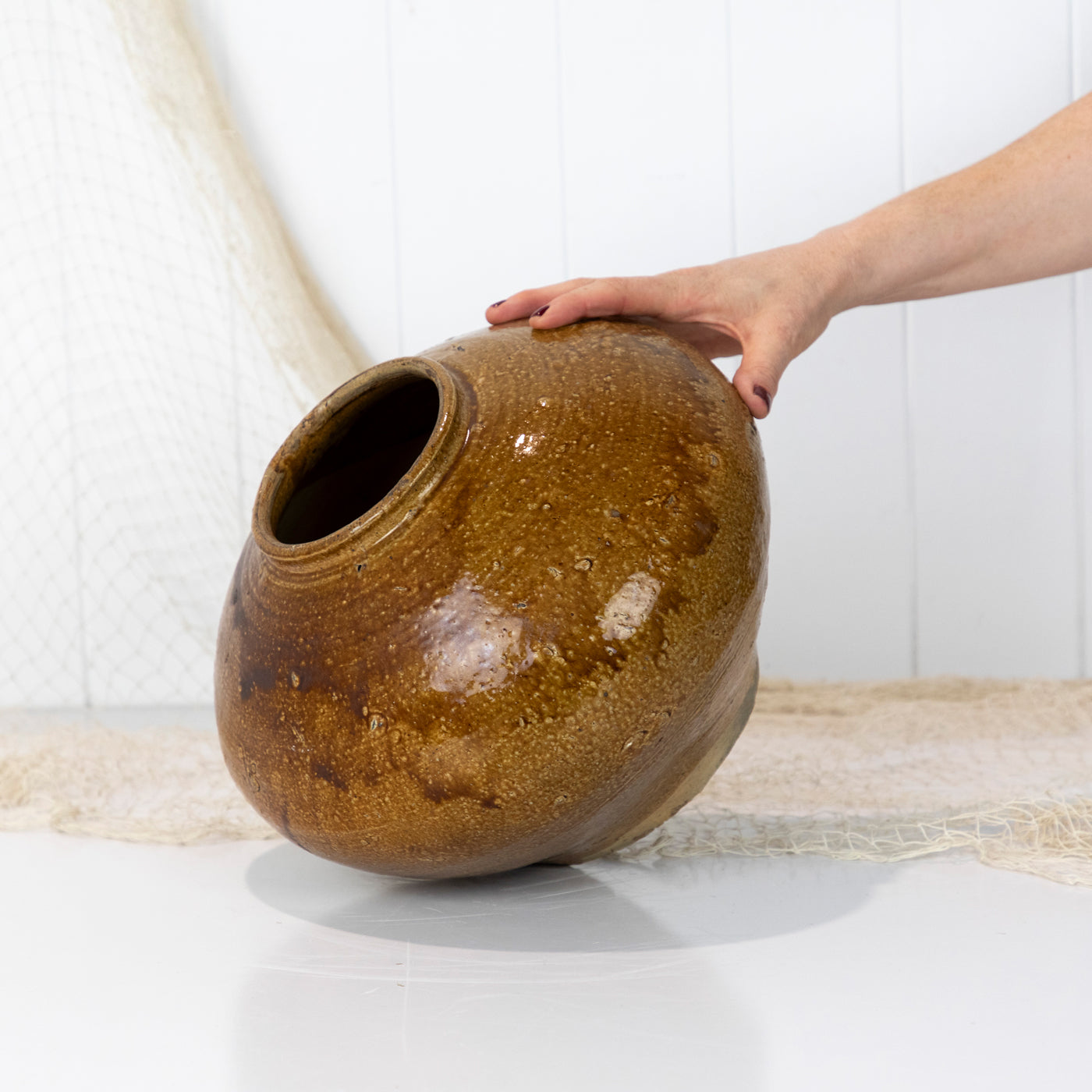 Beautifully textured, with a lovely tan glaze and bulb shape it would be perfect for styling a contemporary or vintage style space.