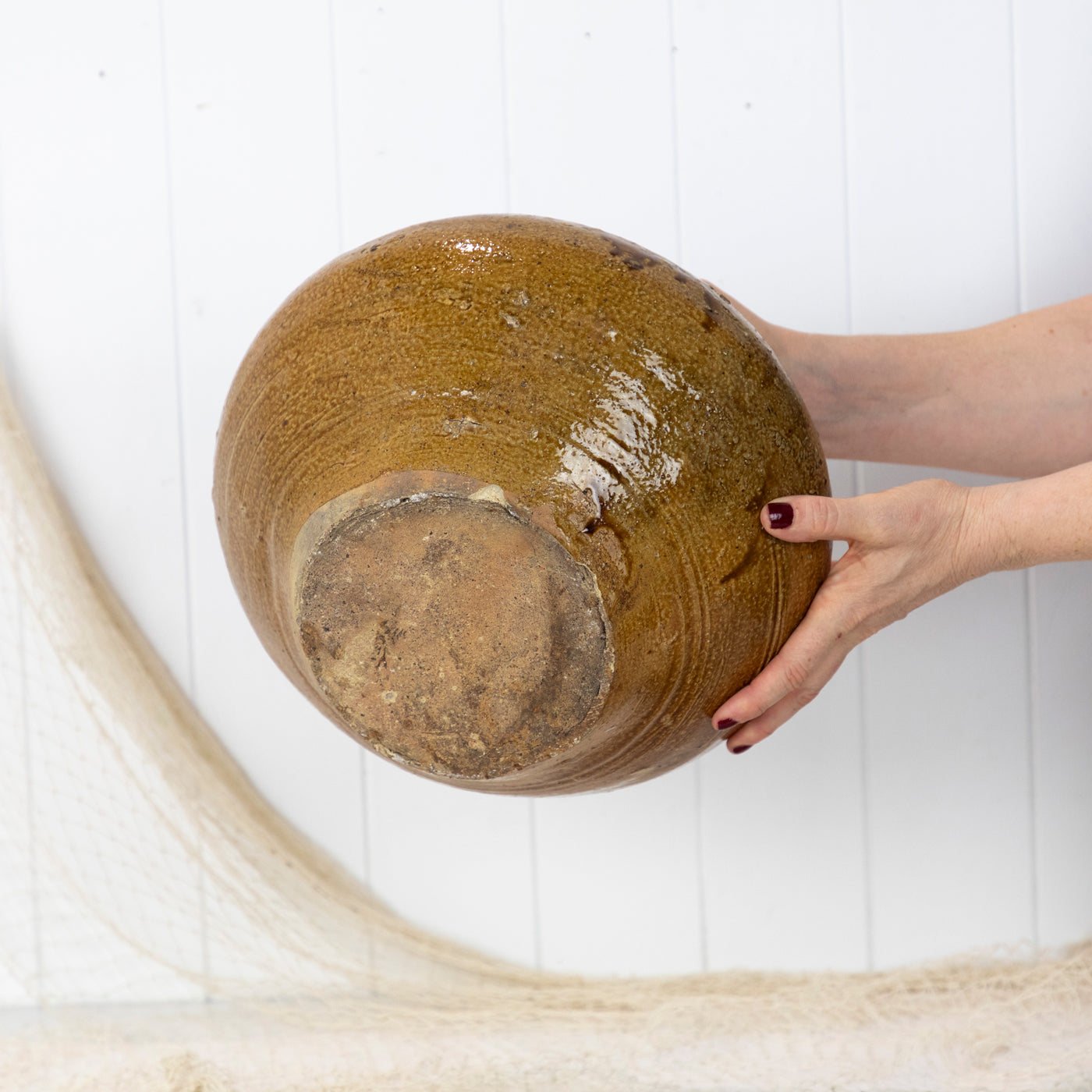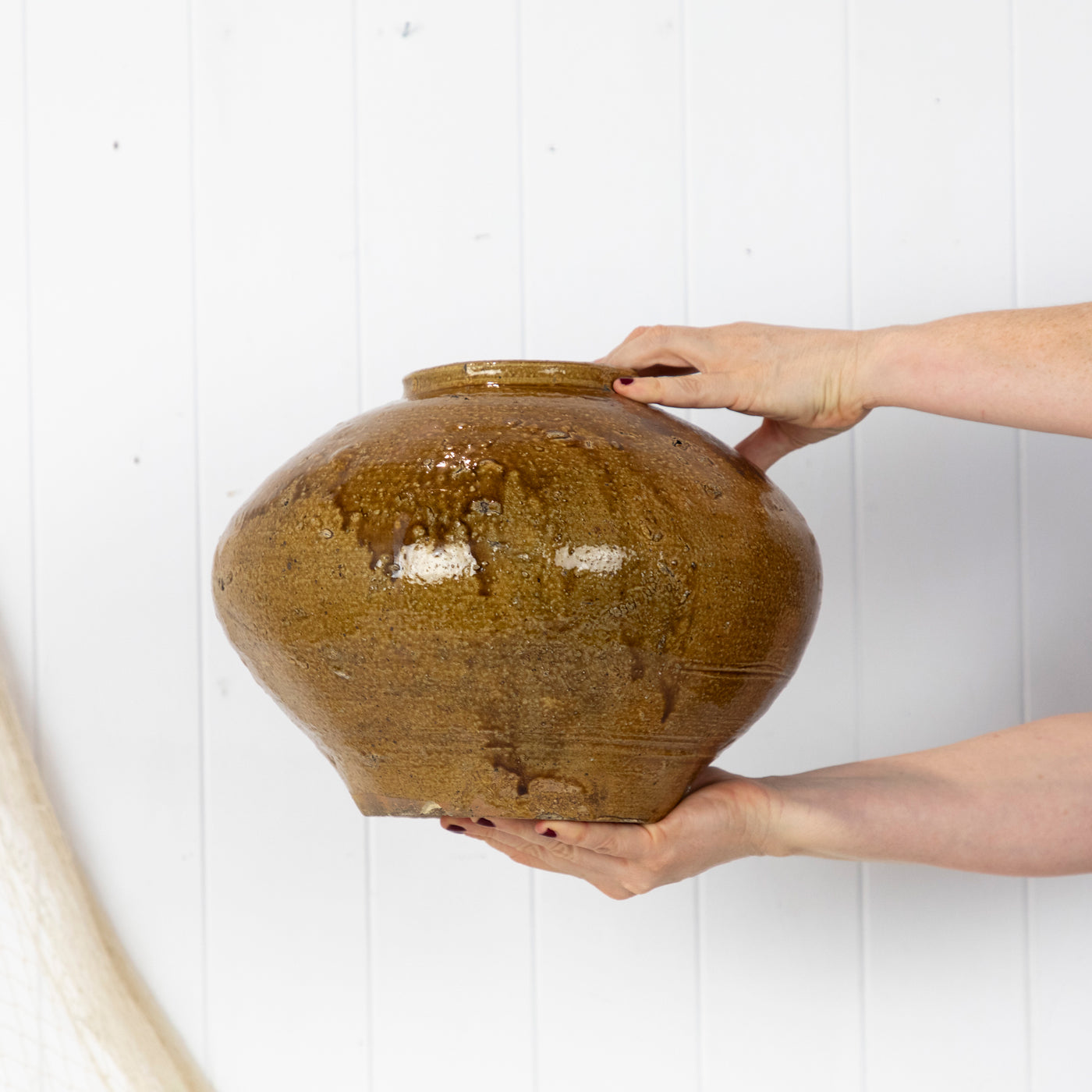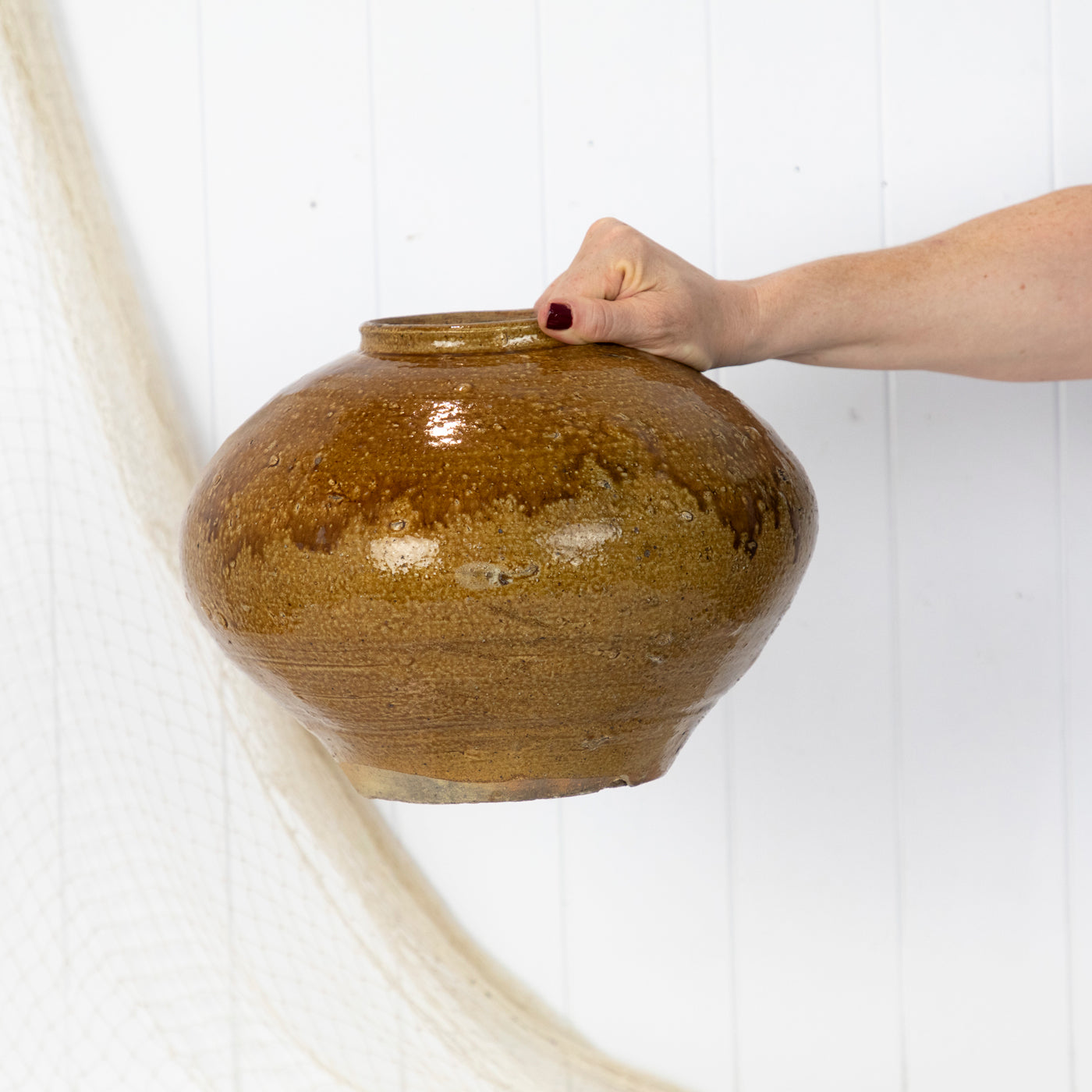 Beautifully textured, with a lovely tan glaze and bulb shape it would be perfect for styling a contemporary or vintage style space.