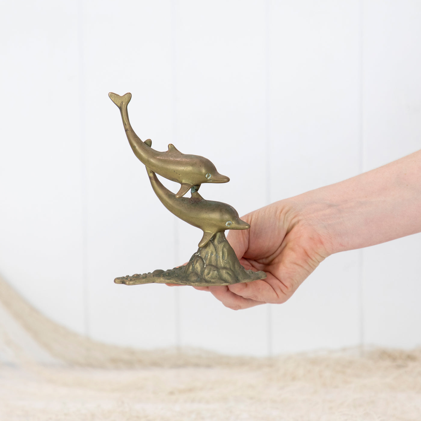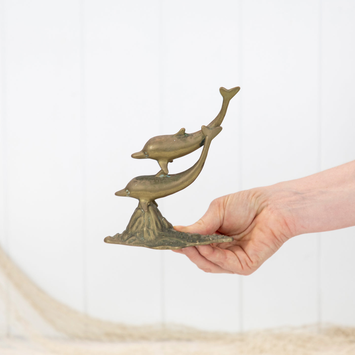 This sweet little vintage statue is of a pair of dolphins jumps the waves.