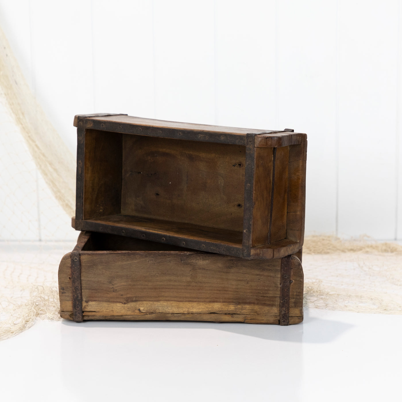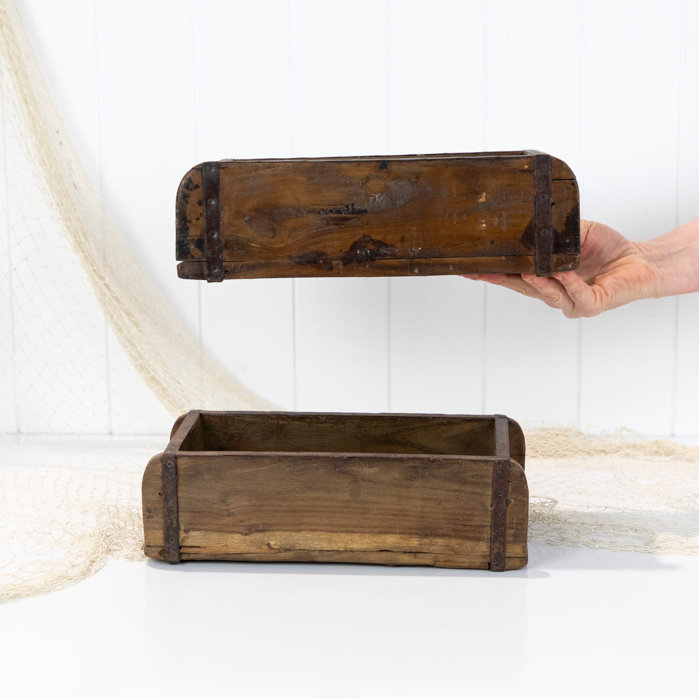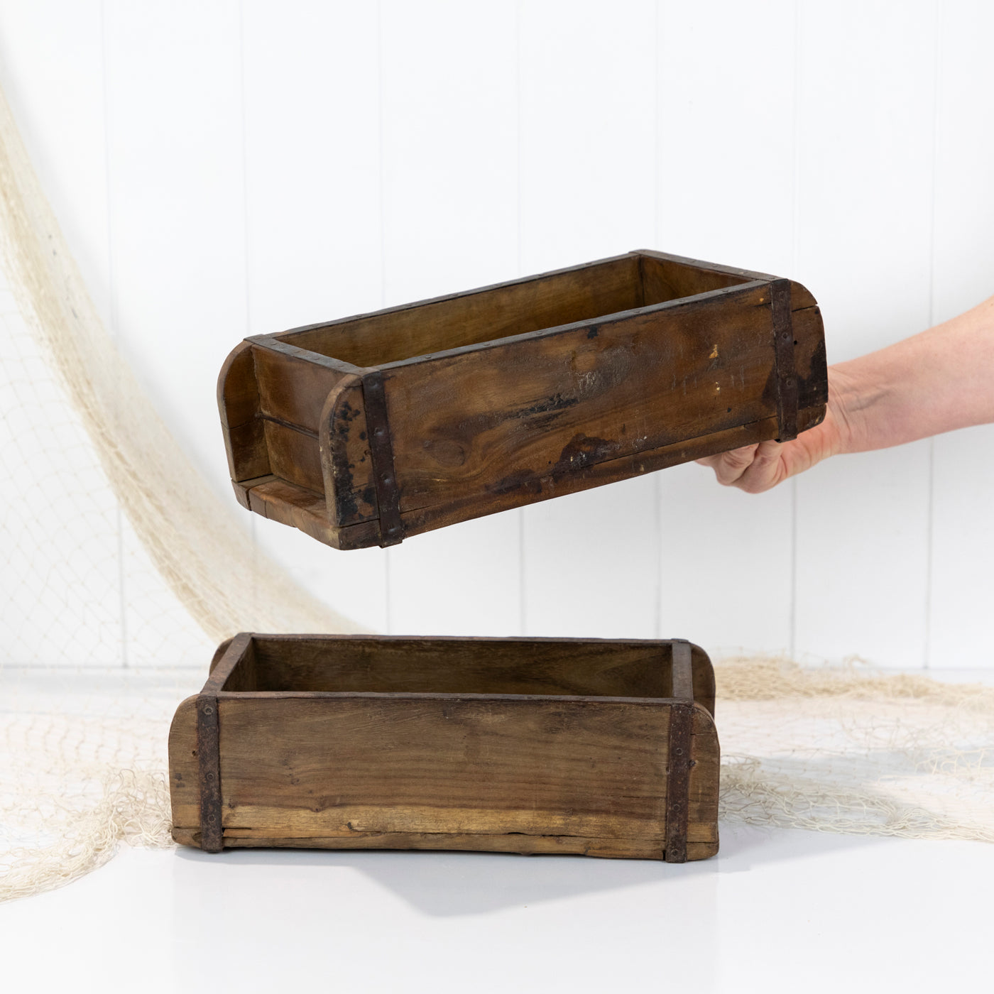 These gorgeous wooden boxes are actually a brick moulds and were used to shape clay or mud into blocks!