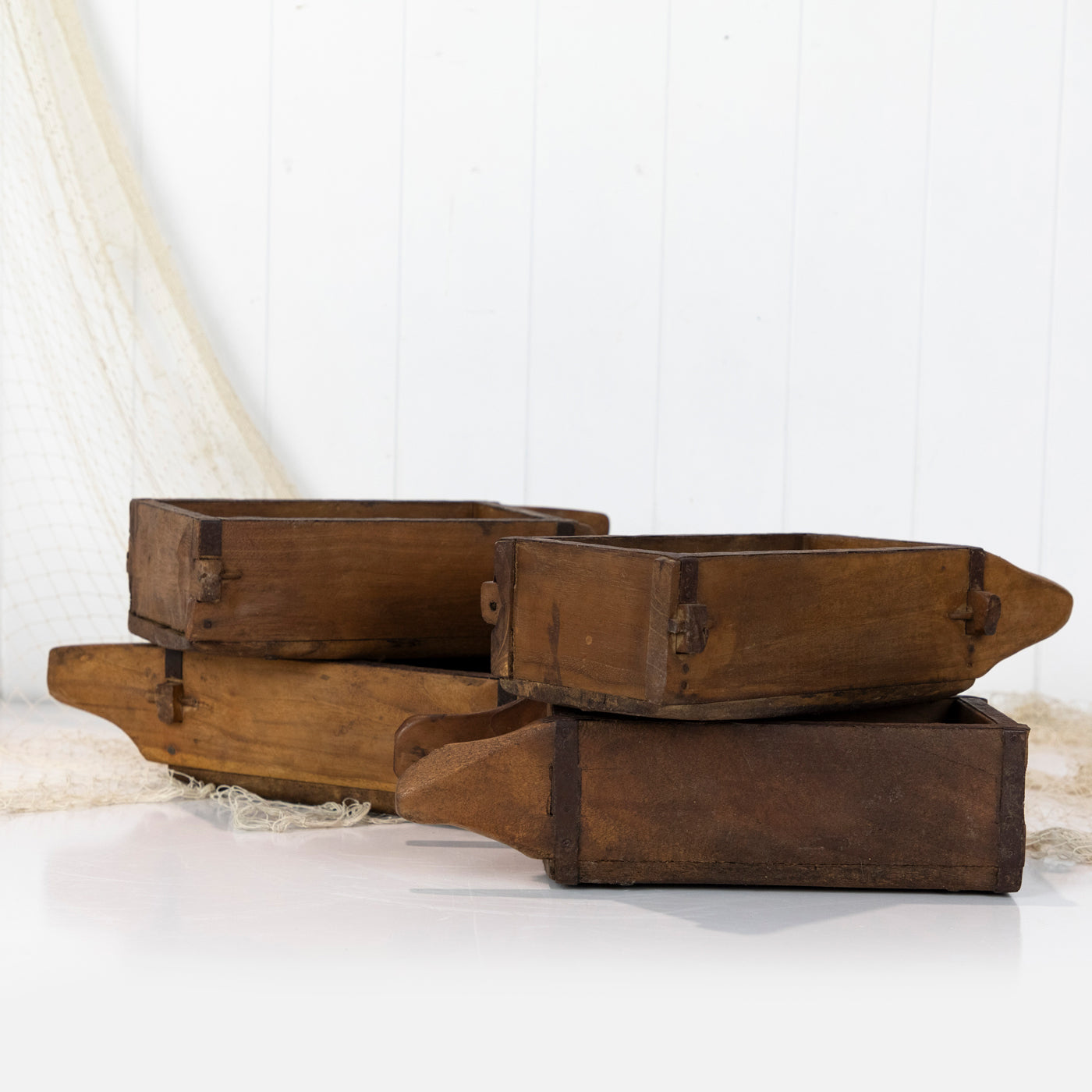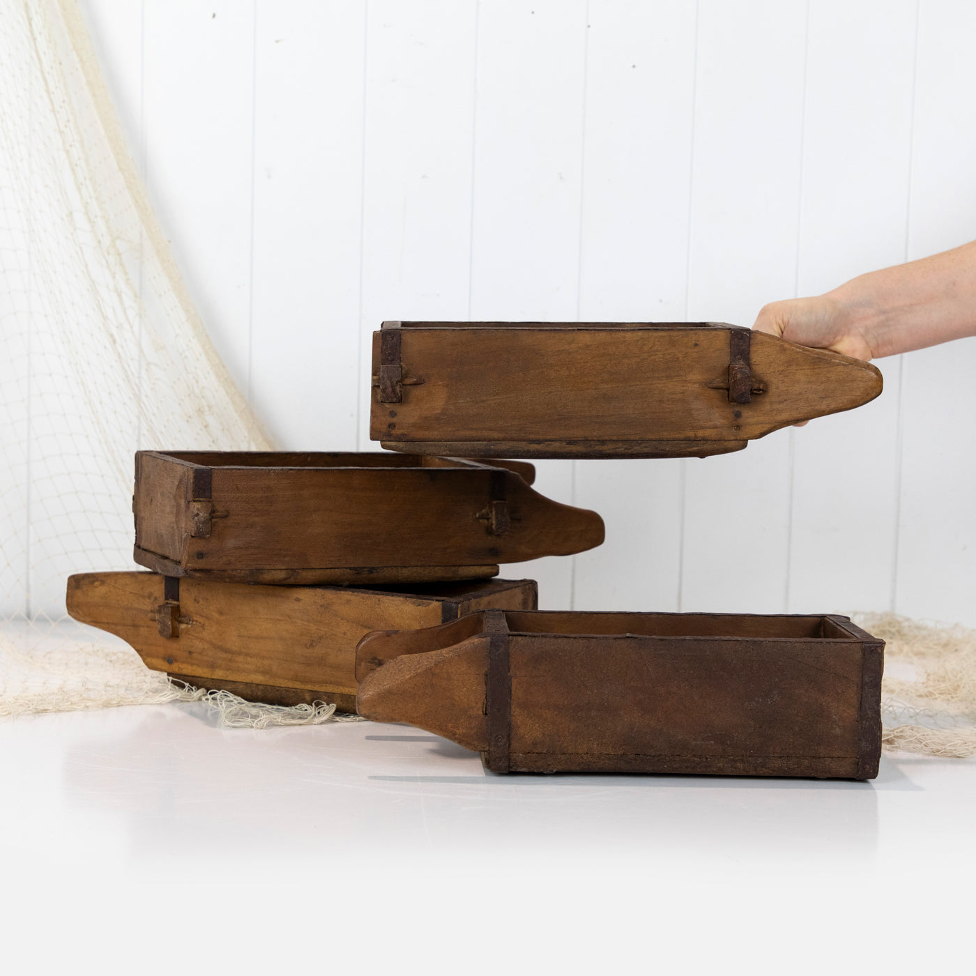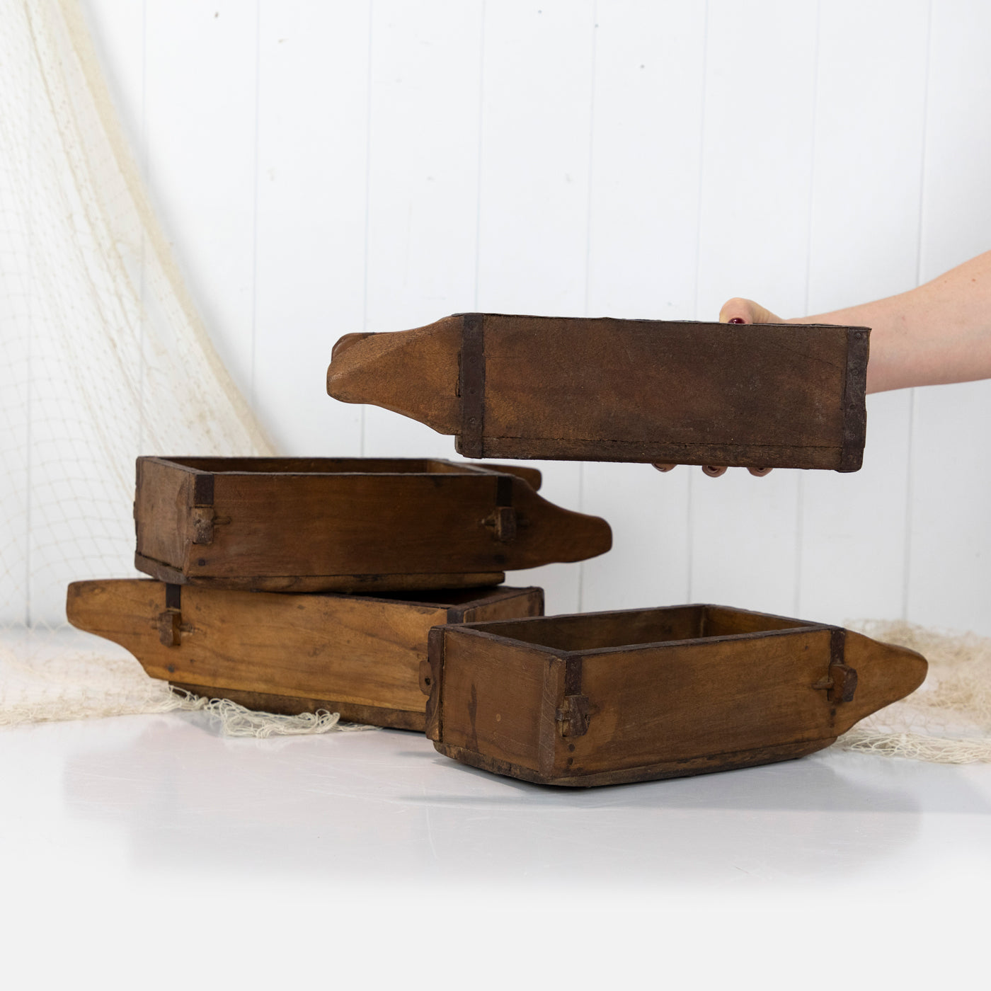 These gorgeous wooden boxes are actually a brick moulds and were used to shape clay or mud into blocks!