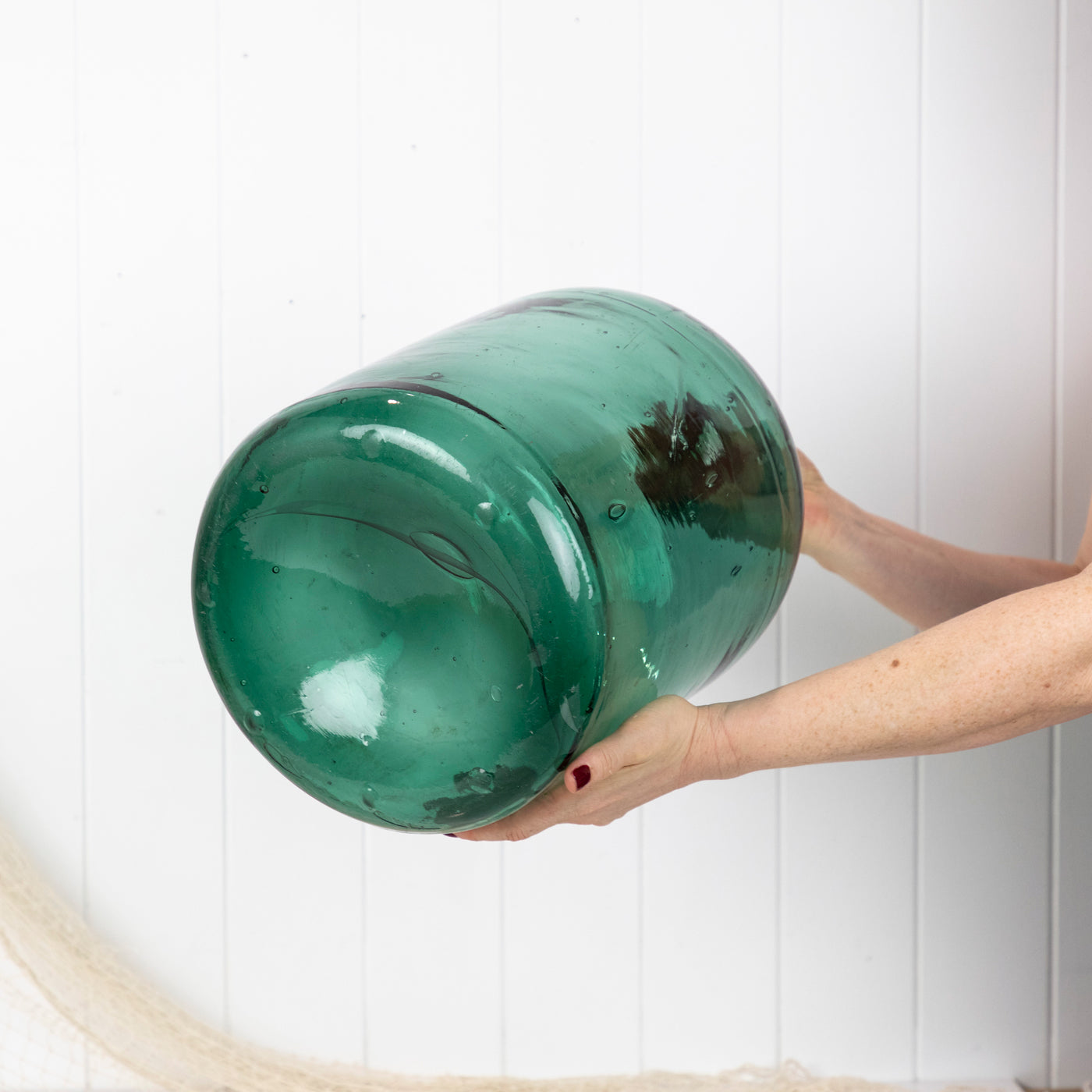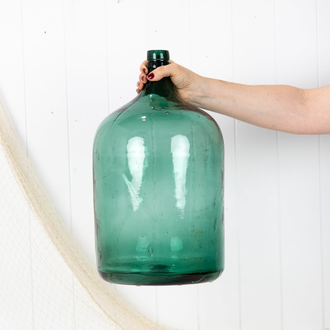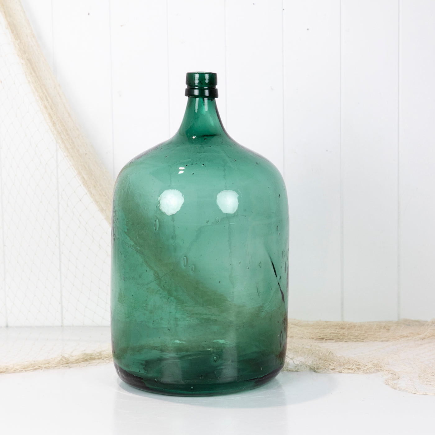 This wonderful old demijohn is made from vibrant green glass.