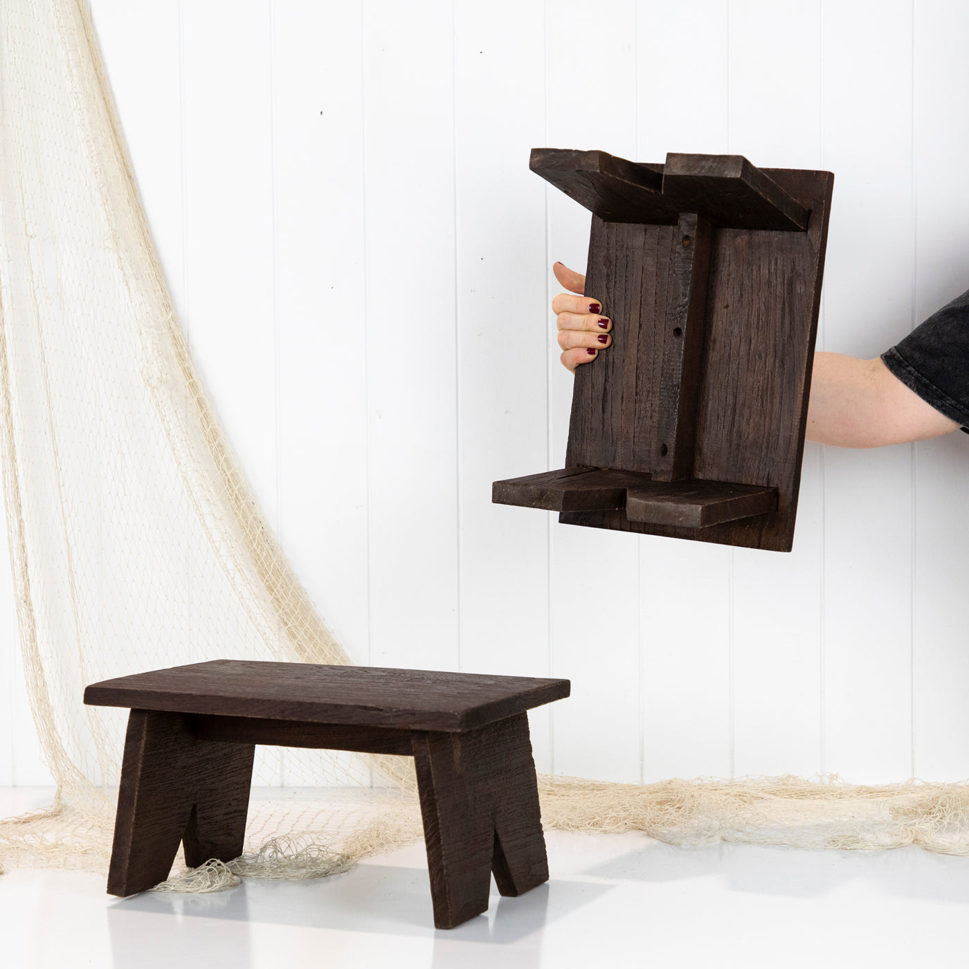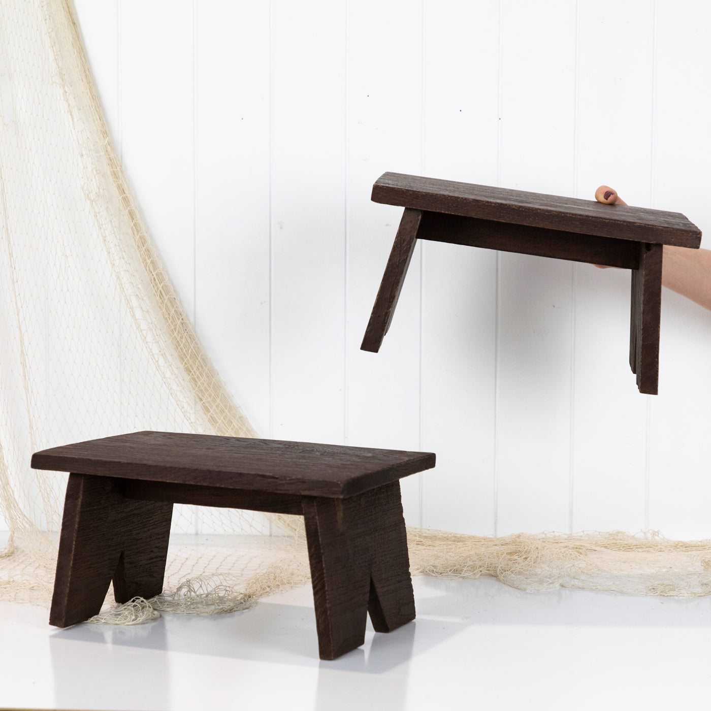 These miniature timber stool make great display pieces.
