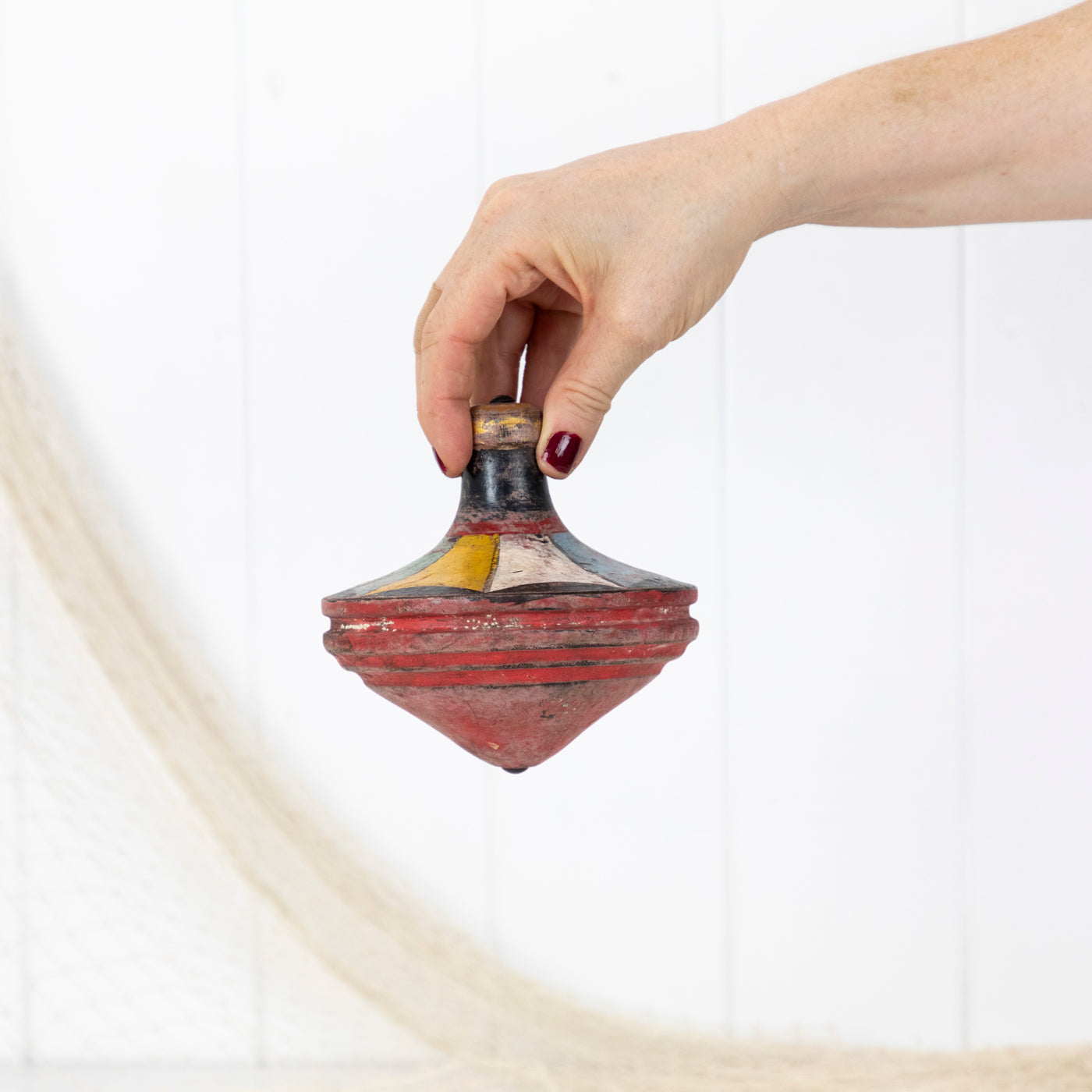 Beautiful handcrafted and painted, they were spun and used in games for skill and competition, representing deep cultural roots in childhood play and artistry.