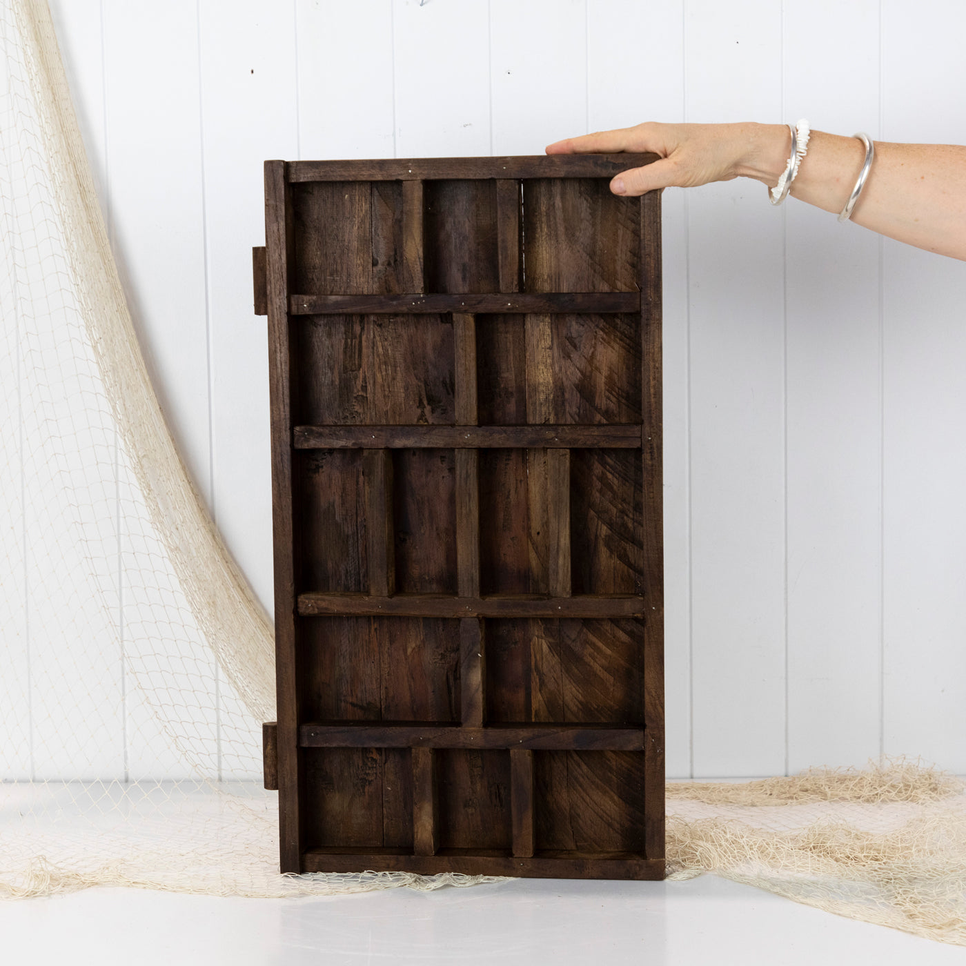 This pigeonhole tray has been custom made for us using reclaimed timbers.