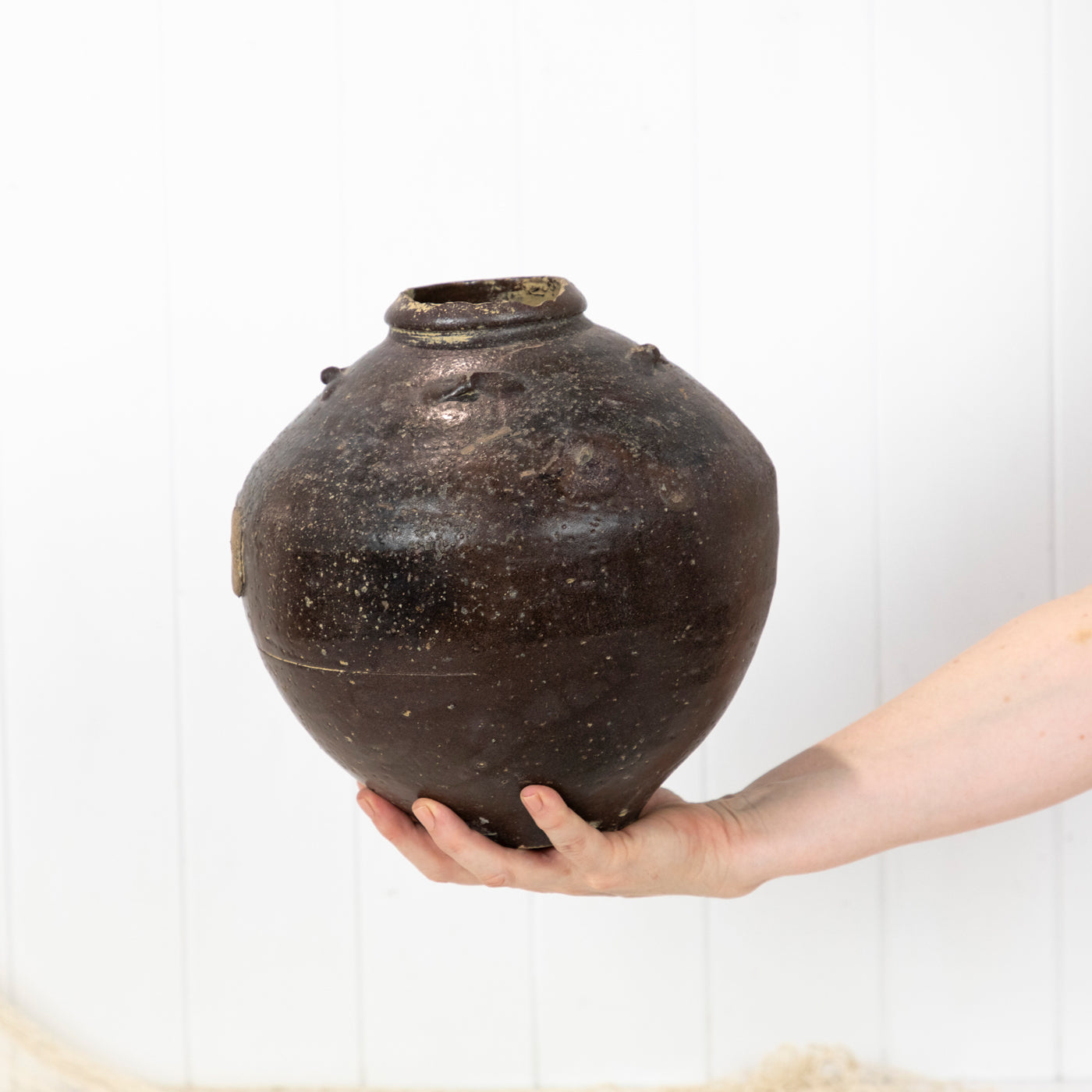 Beautifully textured, with a deep brown glaze and bulb shape it would be perfect for styling a contemporary or vintage style space.