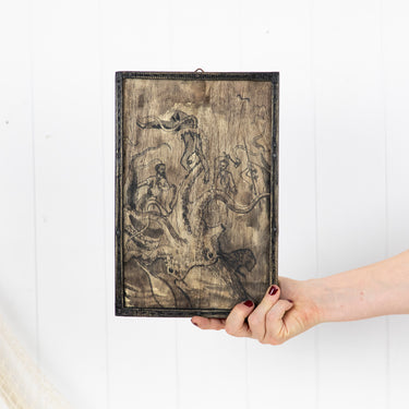 This intricate artwork has been hand painted onto timber with acrylic paints.