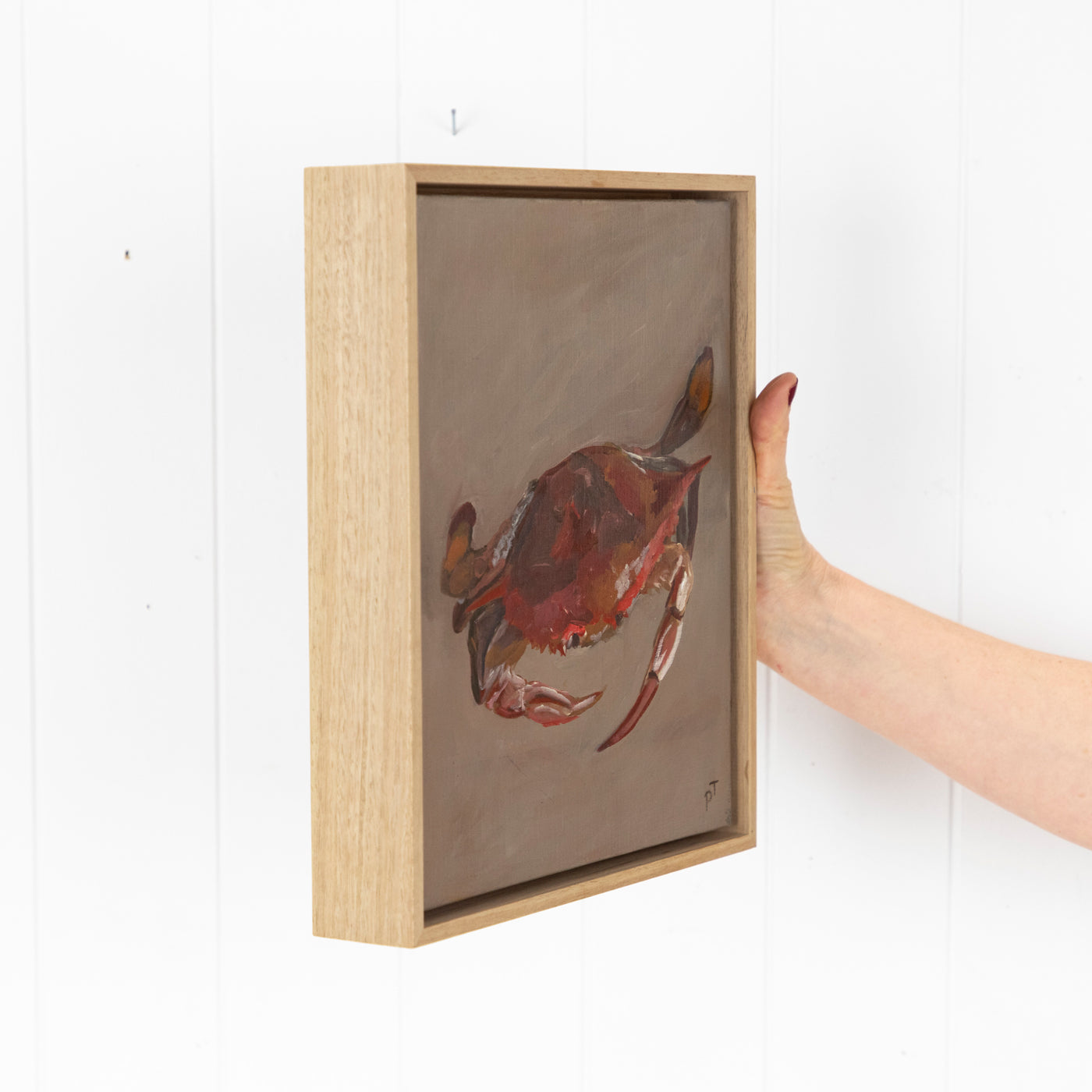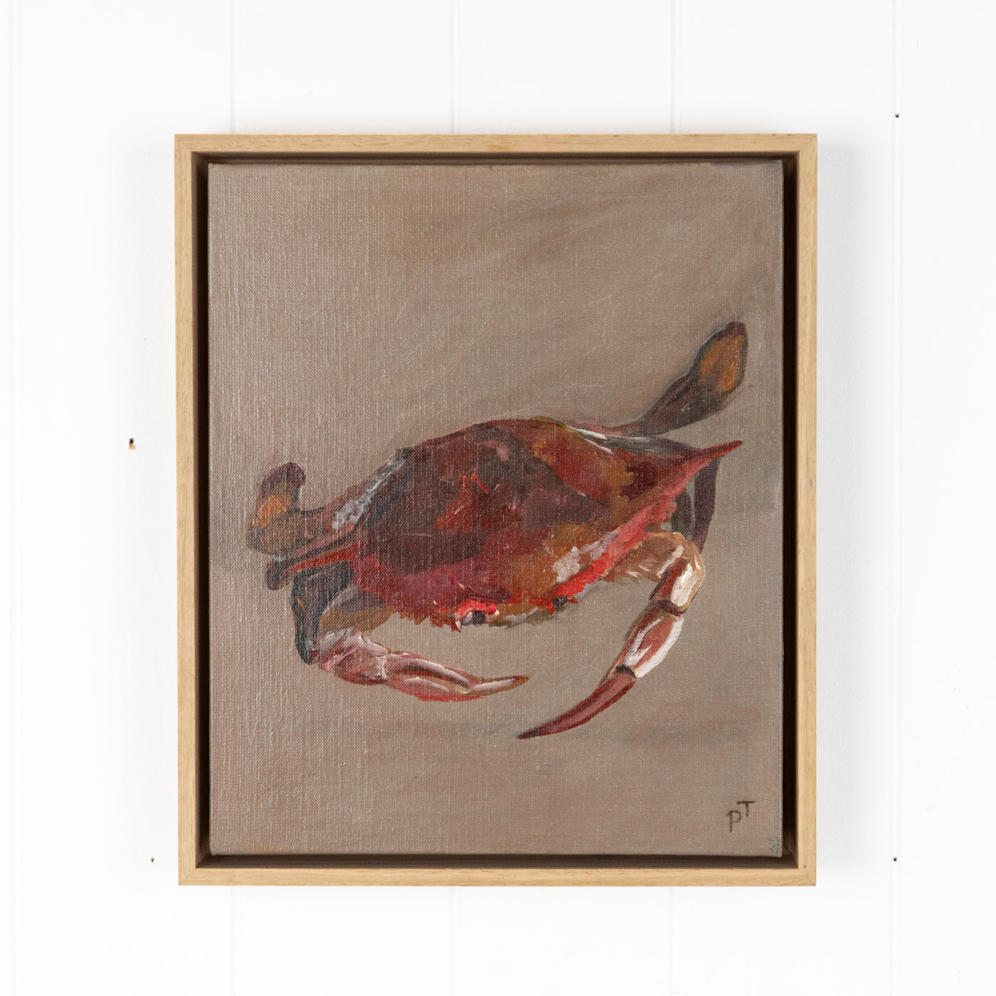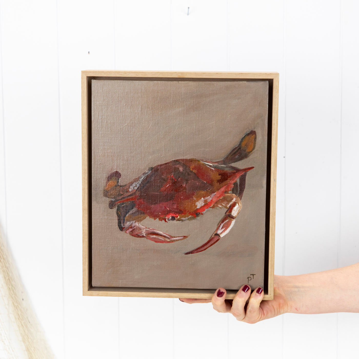 Featuring a red crab, it is painted with acrylics on linen board it has been beautifully framed in oak and ready to hang.