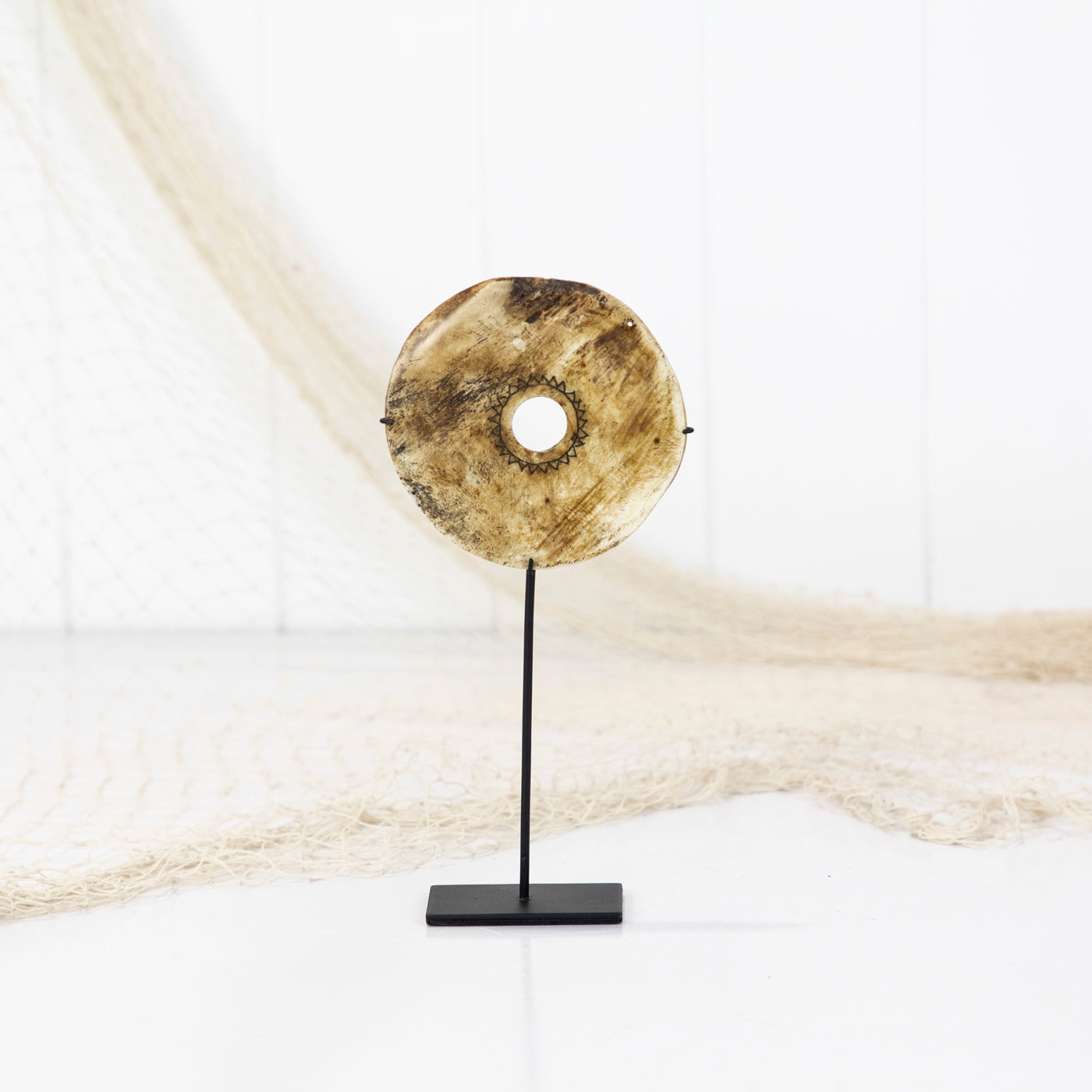 This intricately carved bone pendant was crafted in Timor.