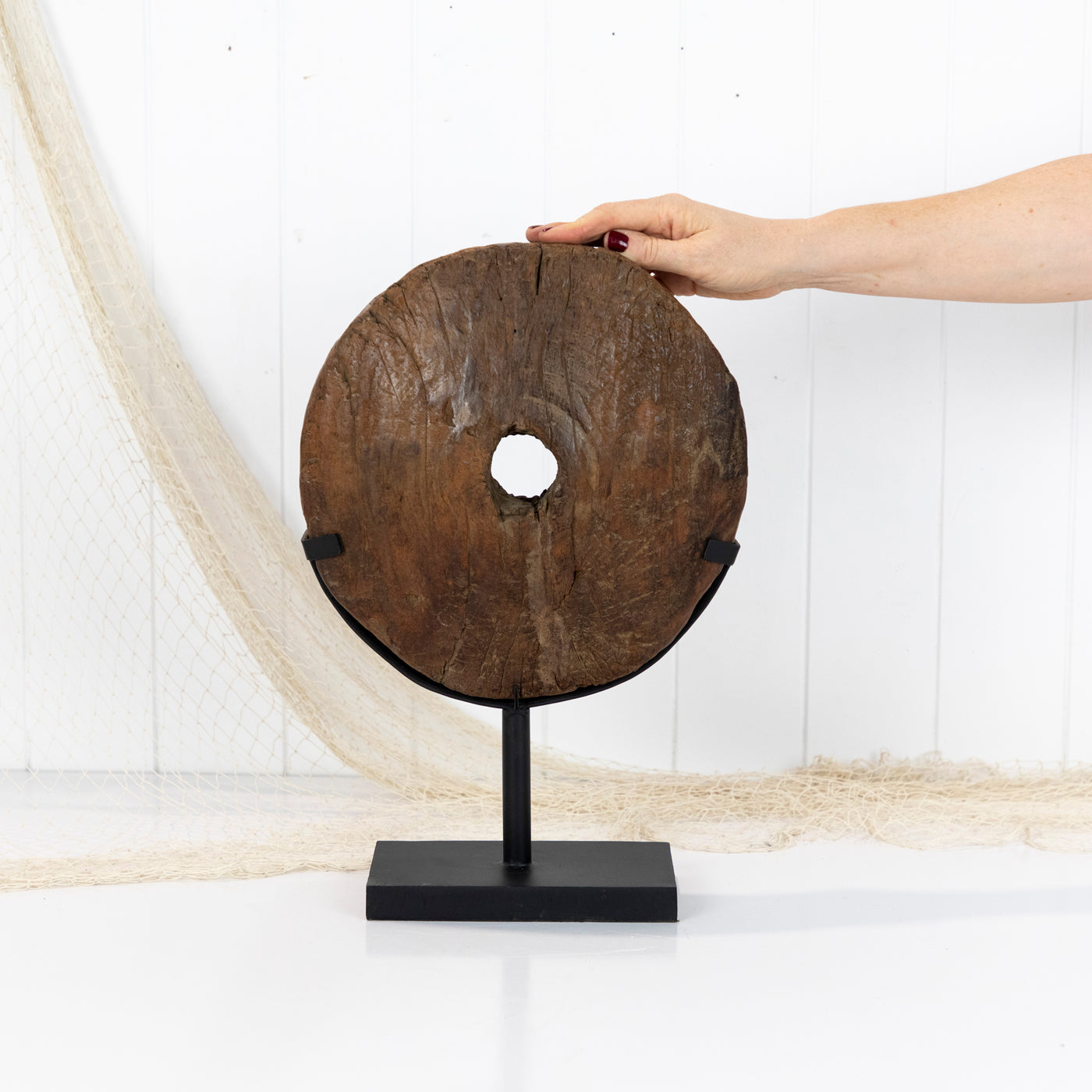 This amazing piece is an old wooden cart wheel!
