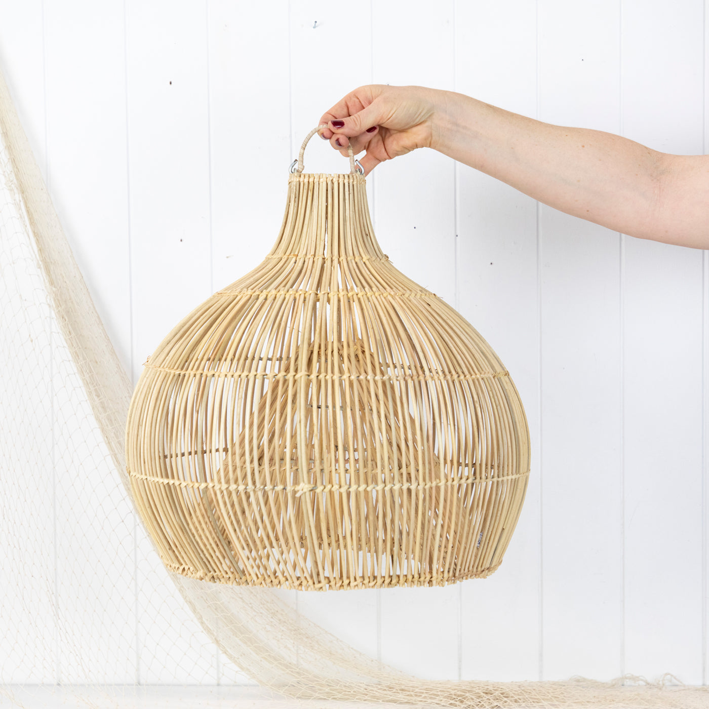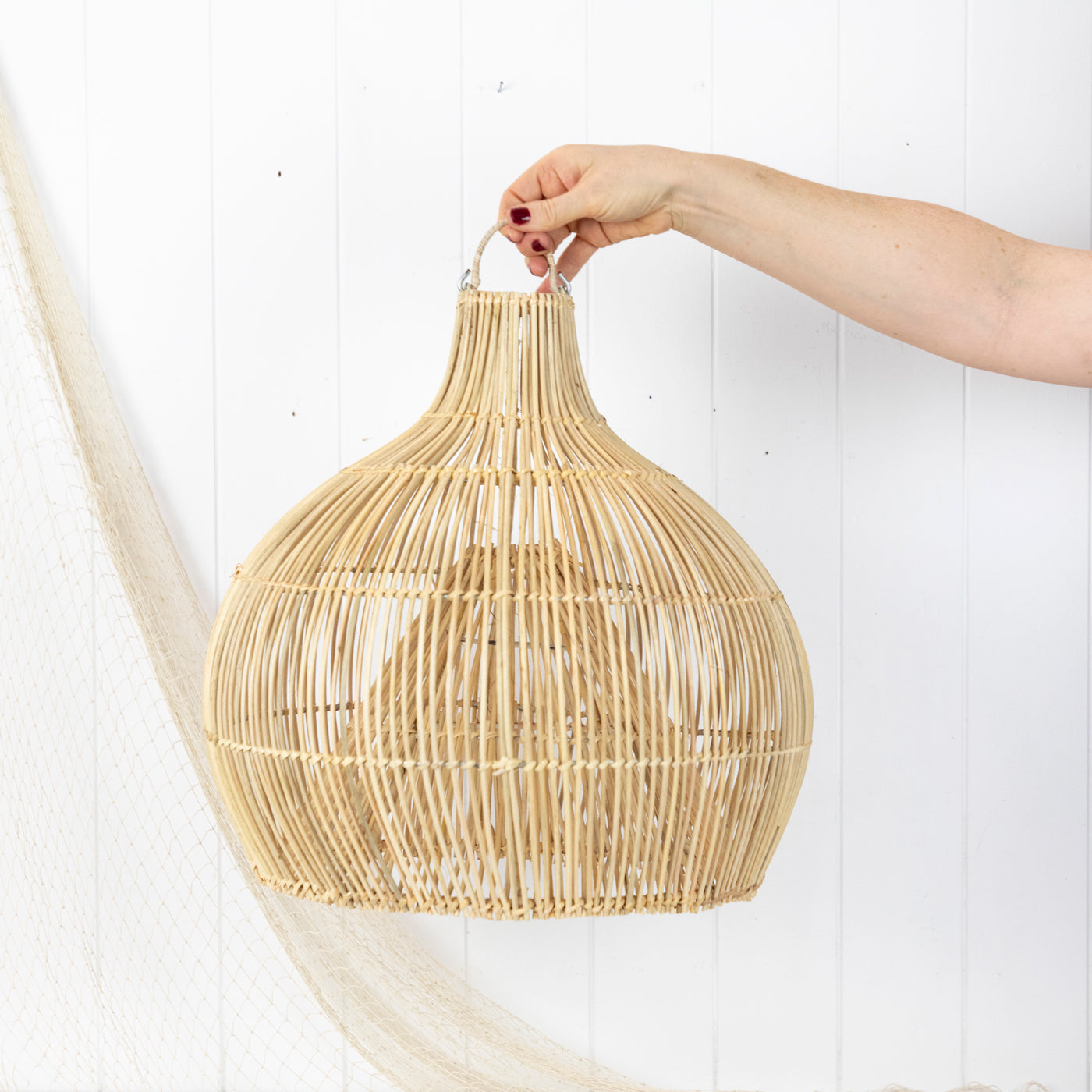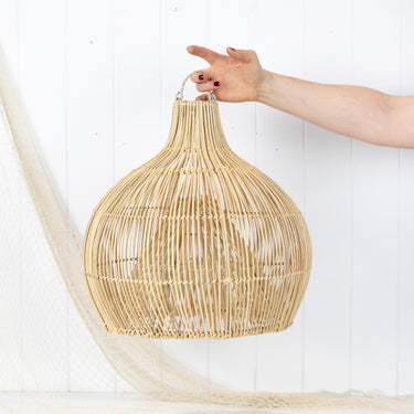 Handmade in Indonesia, these light shades resemble a traditional fish trap.