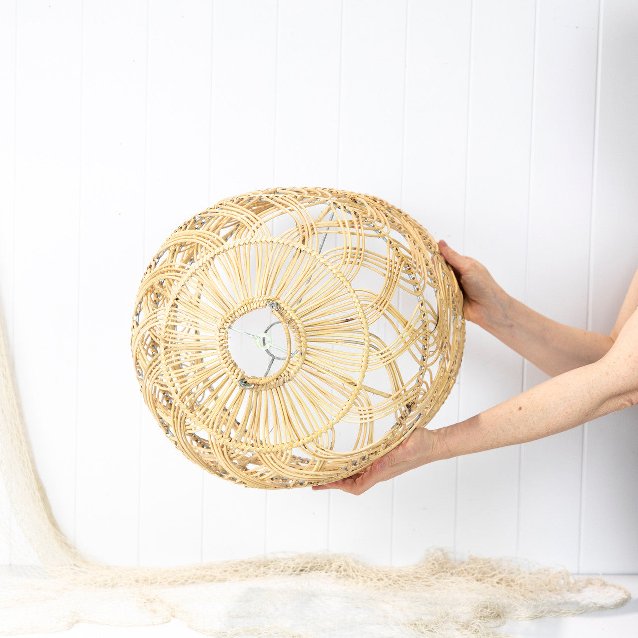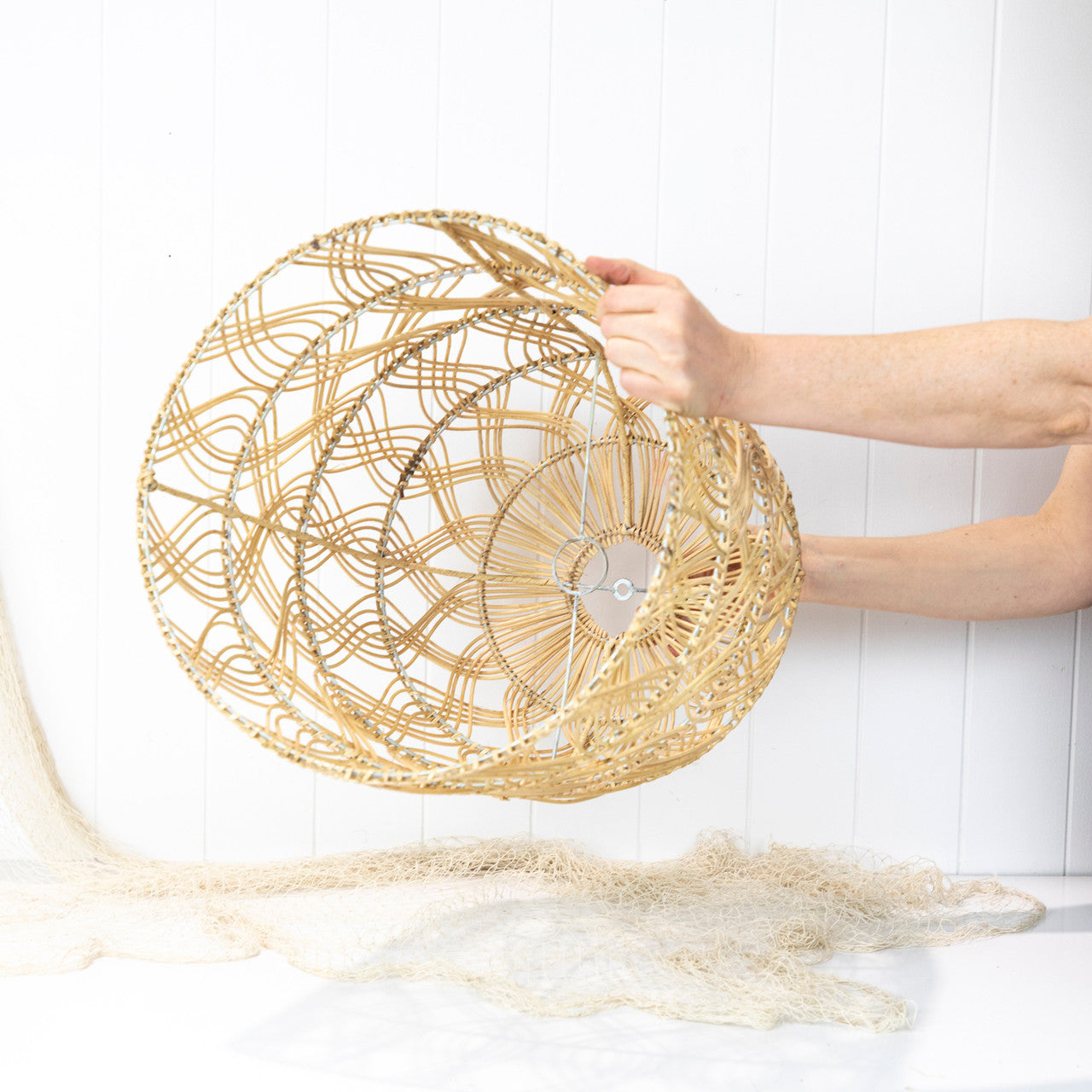 The natural cane has been woven in a wave pattern. They look wonderful over an island bench, or along a hallway.