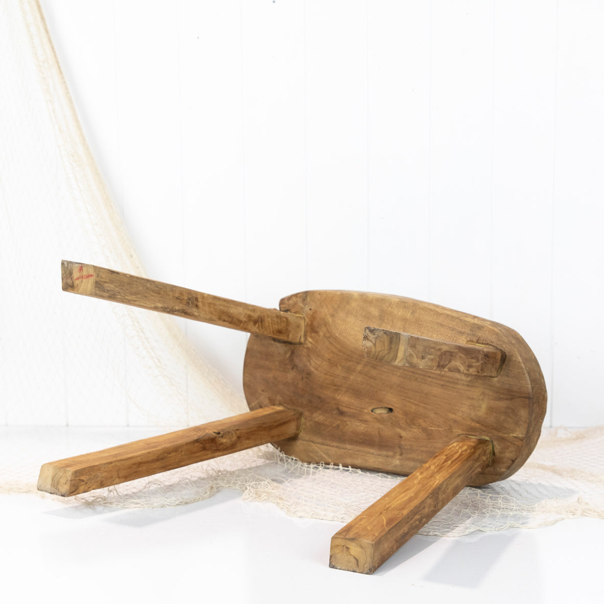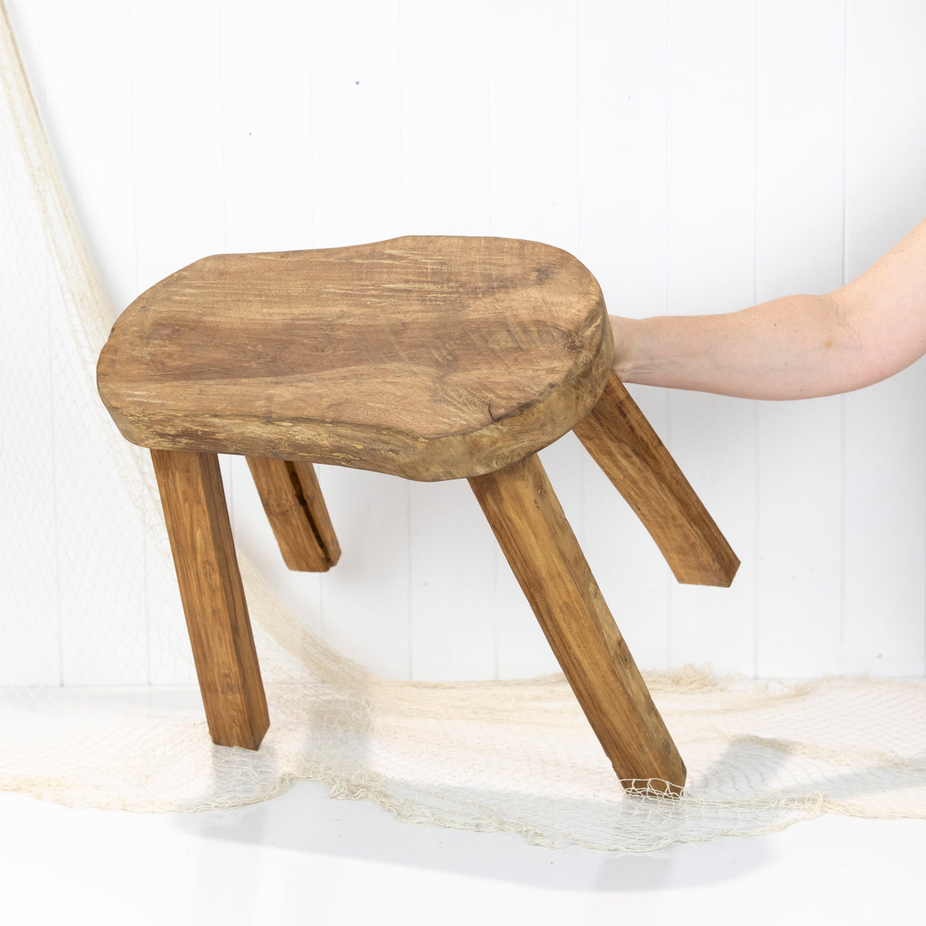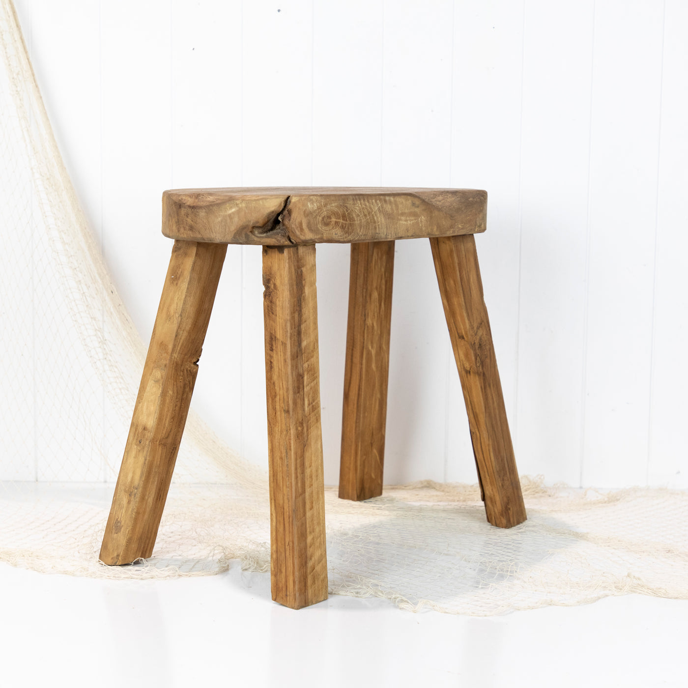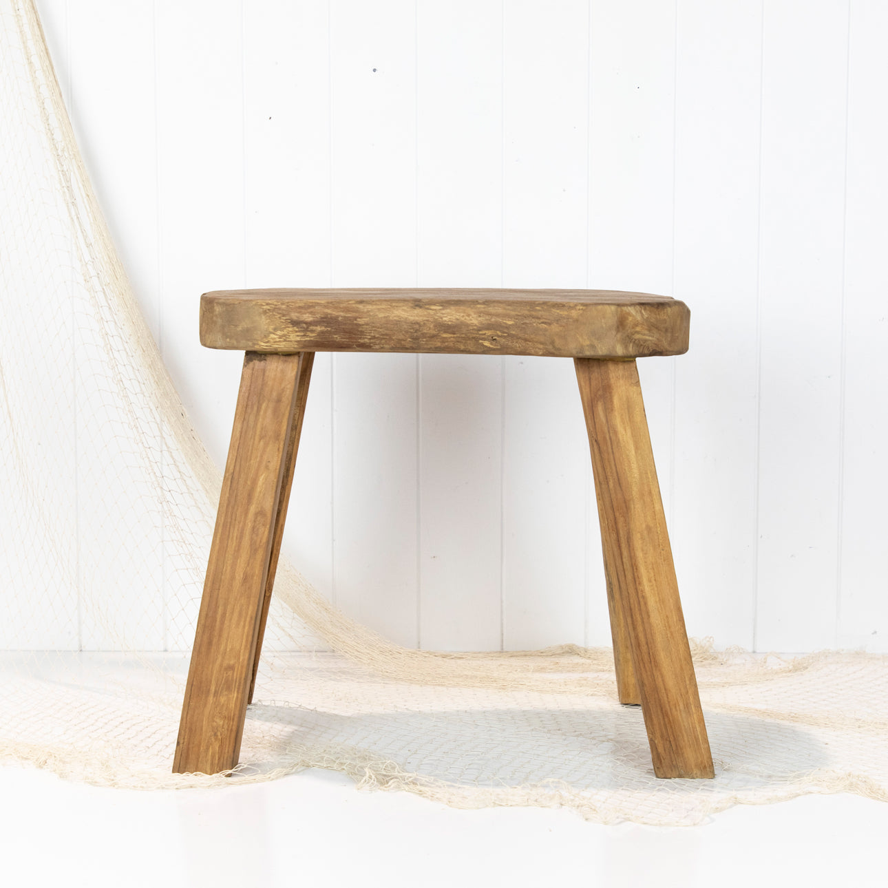 These rustic little wooden stools are from Indonesia and have been made with reclaimed timbers. The top is carved into an oval or coffee bean shape.