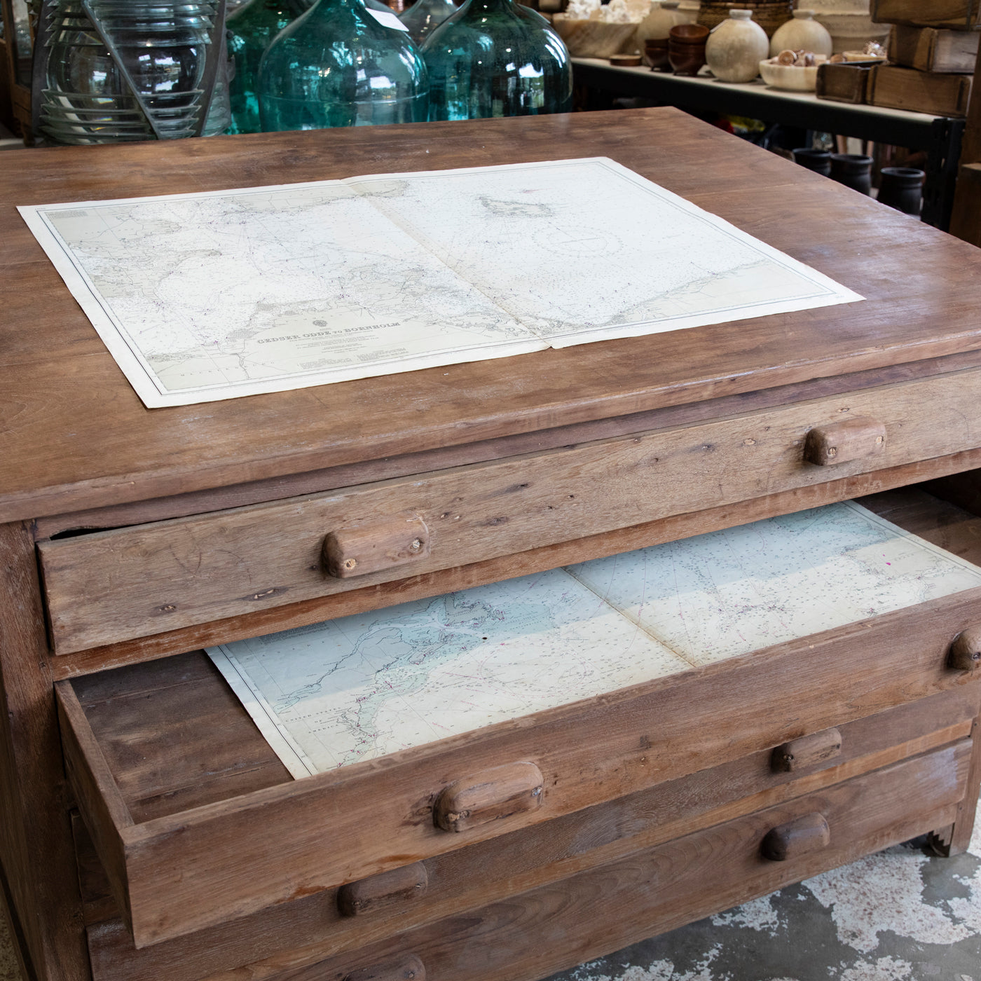 With large drawers, it is a perfect storing artworks, charts, maps, or small collectibles such as shells.