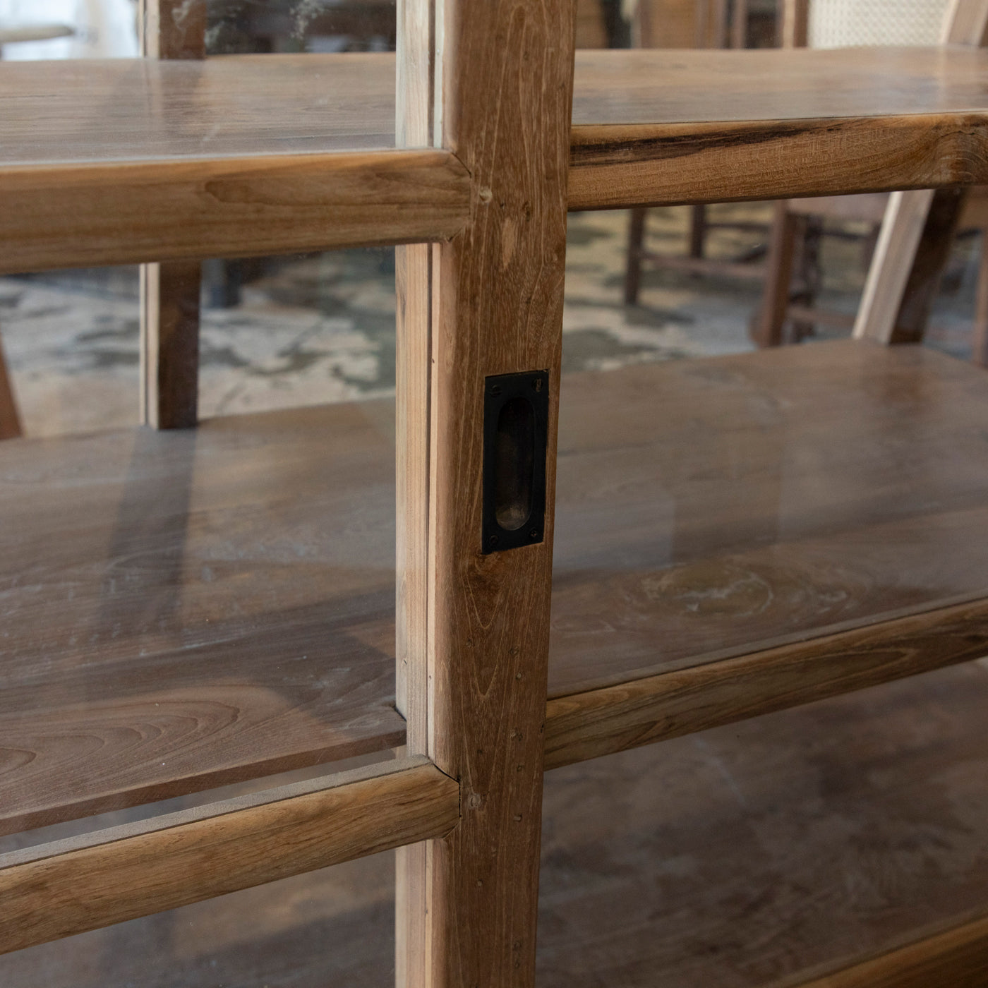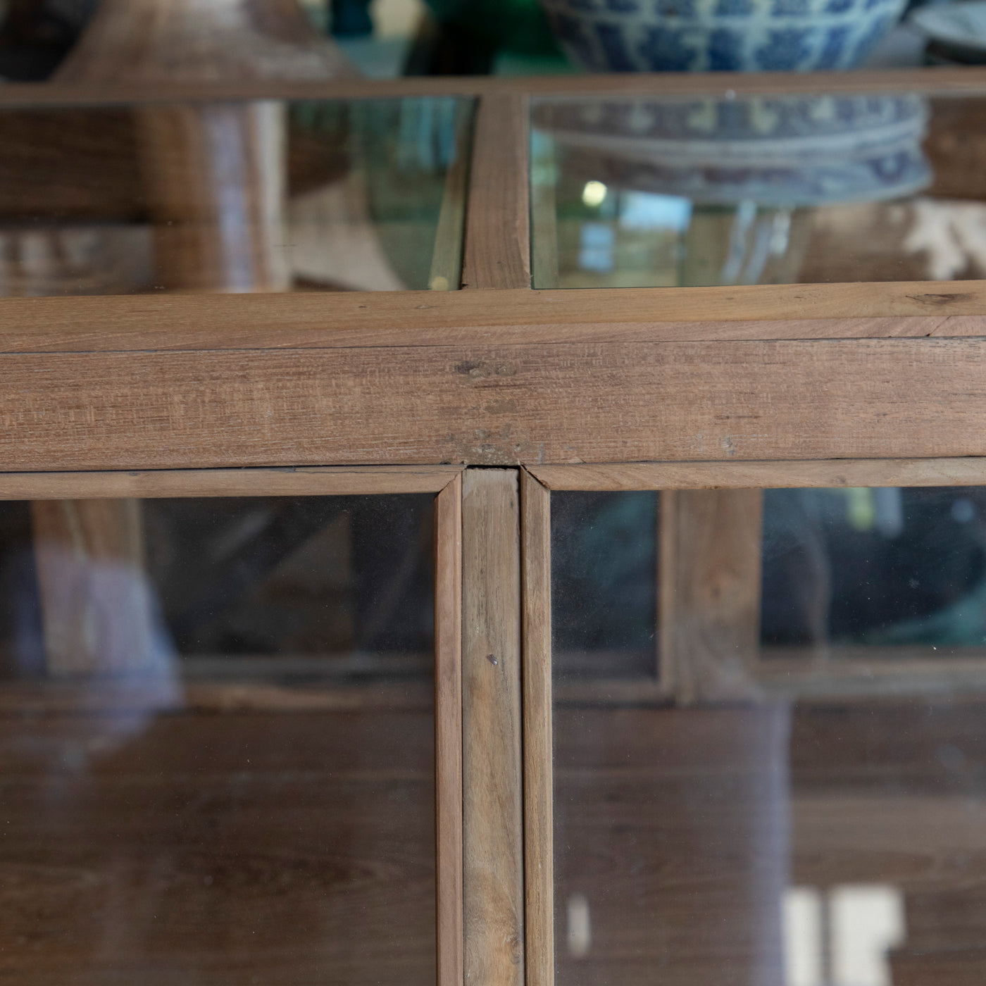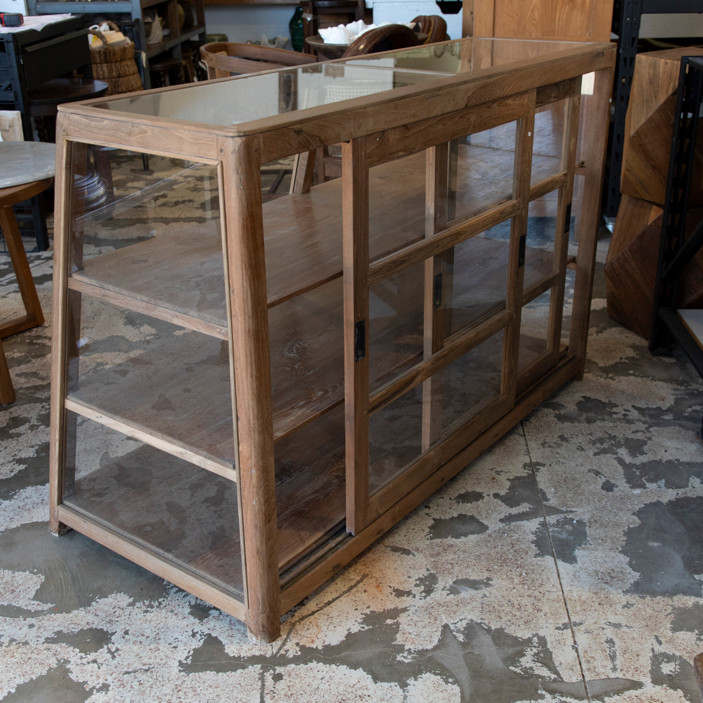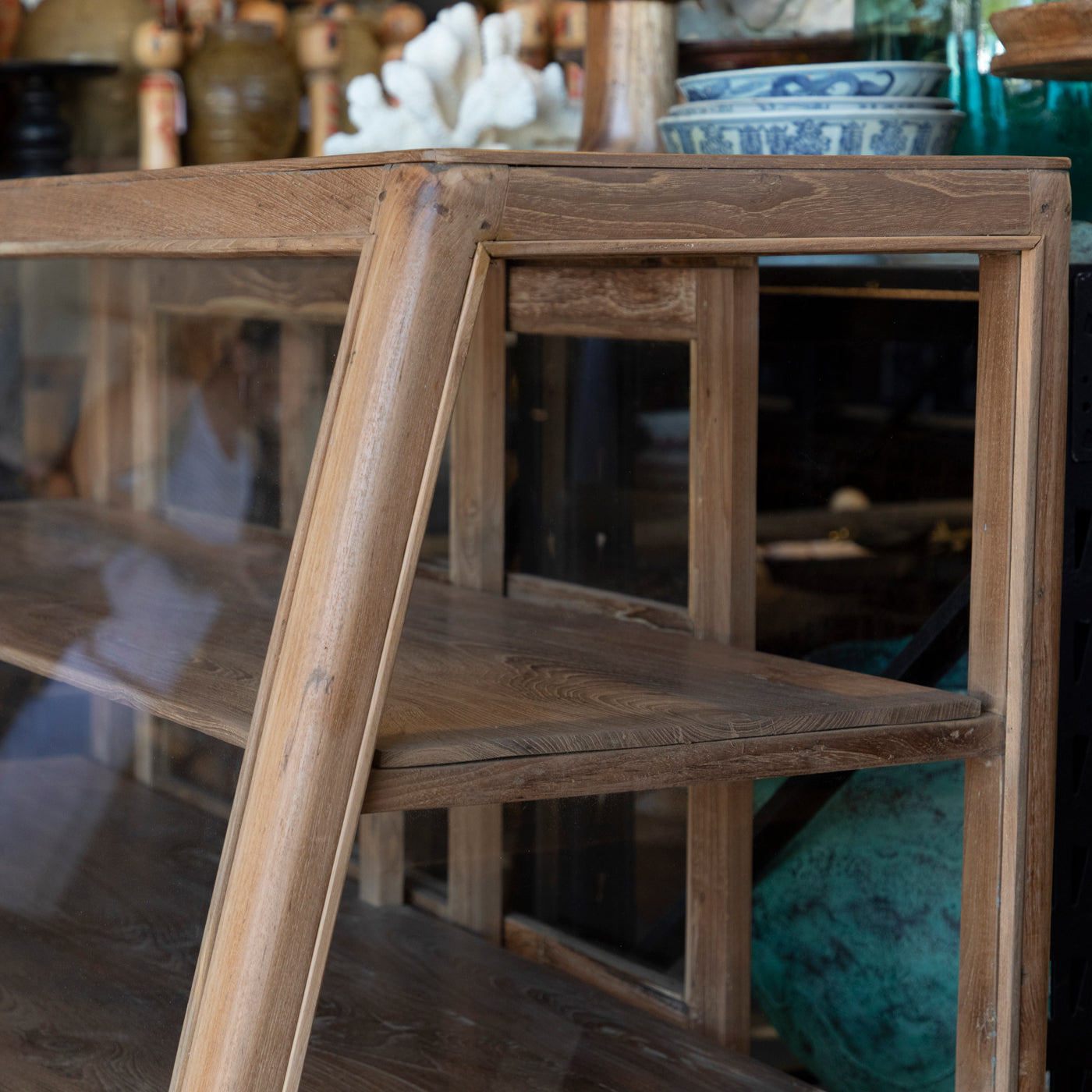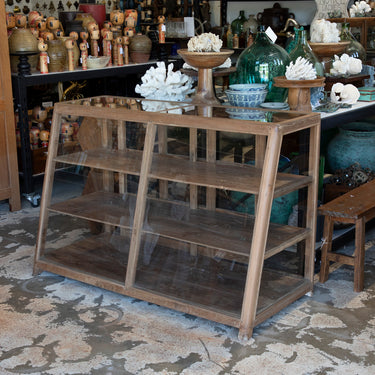 Beautifully made from reclaimed timbers it has glass on all sides and sliding doors at the back. Perfect for displaying delicate pieces, keeping them safe and dust fee!