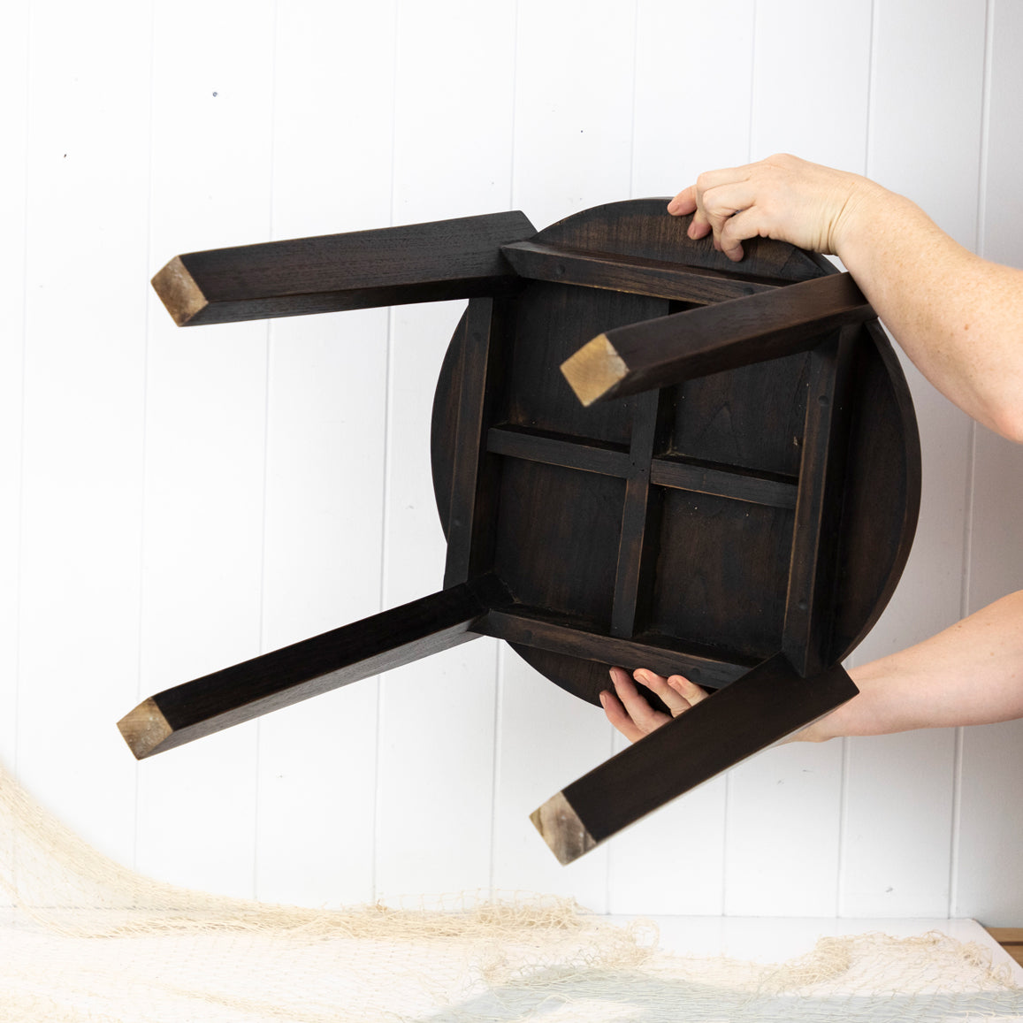 Made new the timber has been stained a dark brown/black but the grain can still be seen.