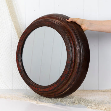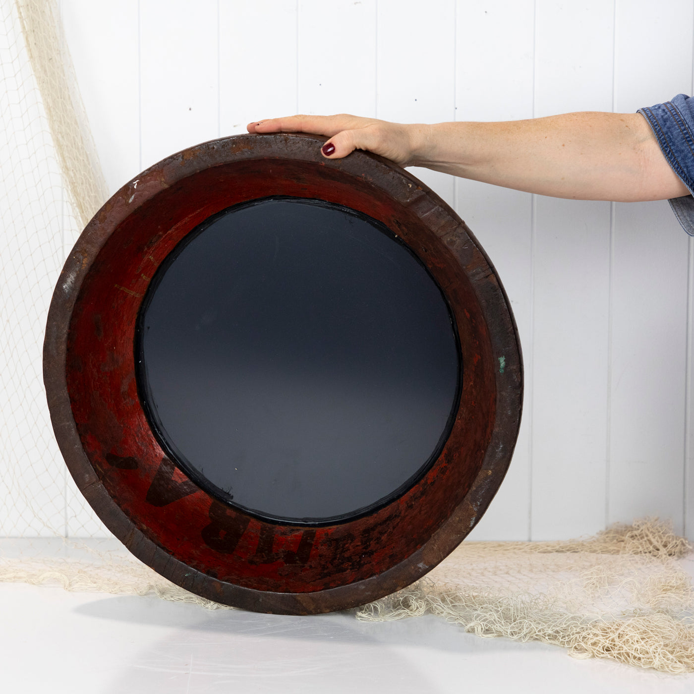 This beautiful piece was originally a tambourine used in ceremonies in Bali. It has been restored and made into a fabulous mirror.
