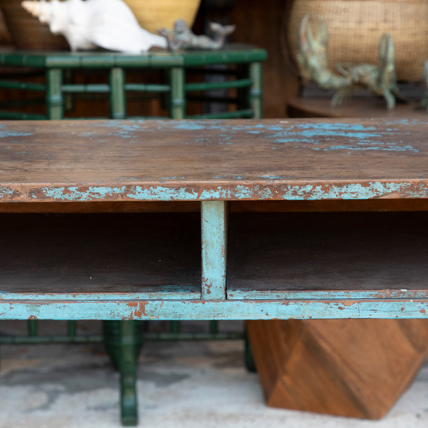 It has two compartments perfect at the front that may have once held drawers, now perfect little storage spots!