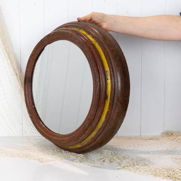 This beautiful piece was originally a tambourine used in ceremonies in Bali. It has been restored and made into a fabulous mirror.