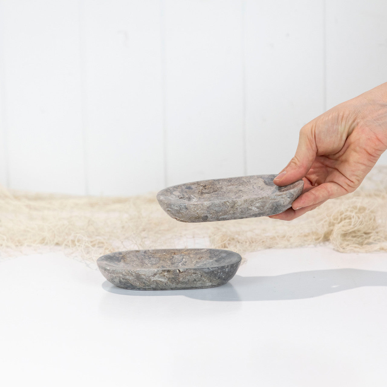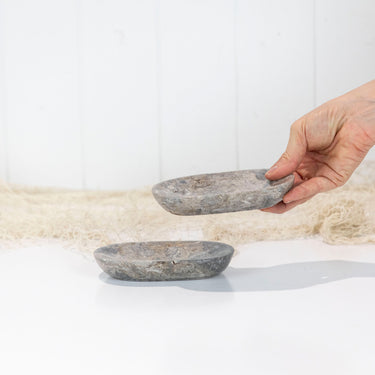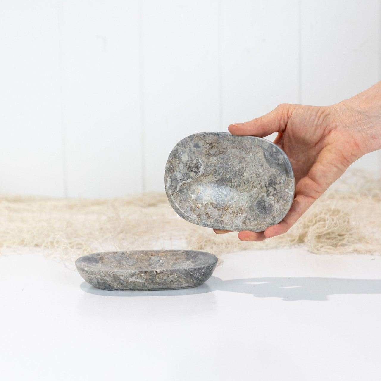 Beautiful pieces of stone have been carved and polished into a shape of a dish.
