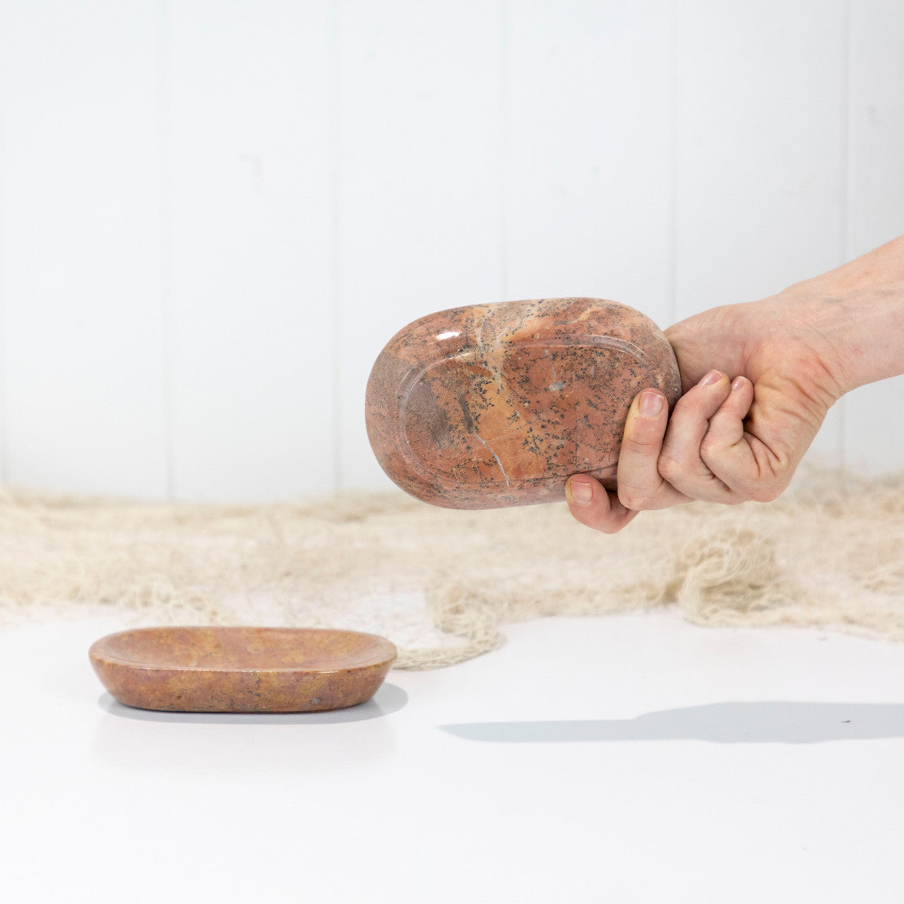 Beautiful pieces of stone have been carved and polished into a shape of a dish.