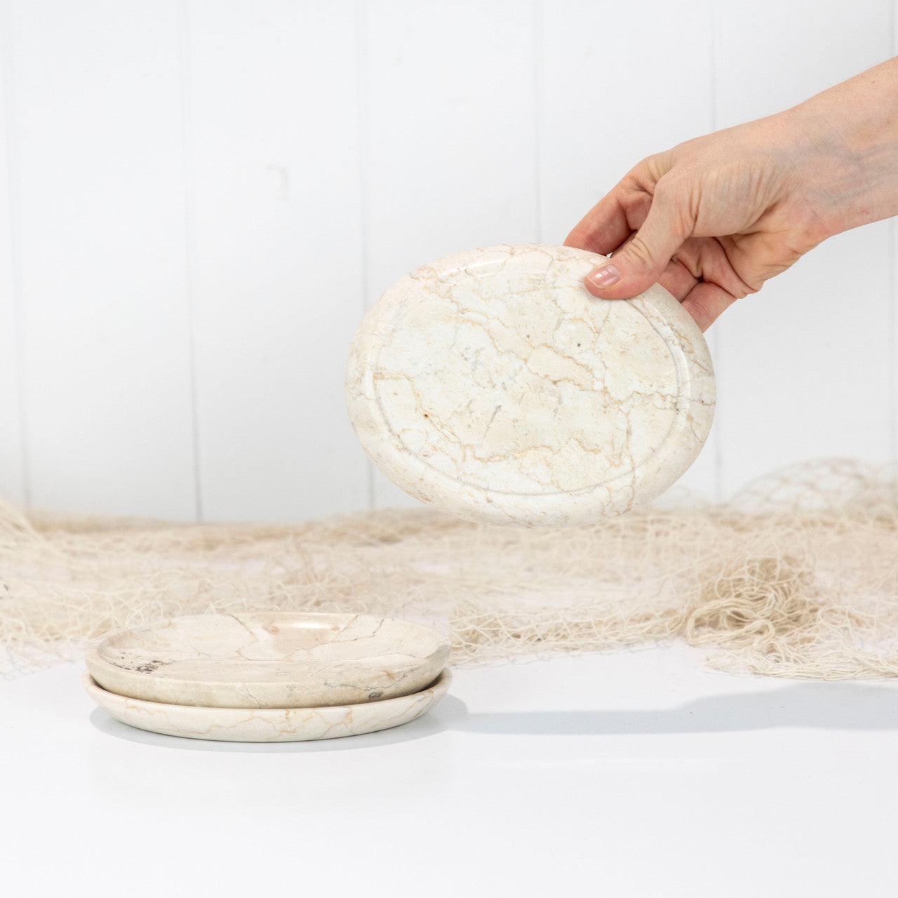 Beautiful pieces of stone have been carved and polished into a small plate.
