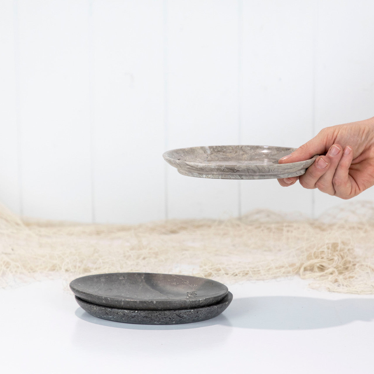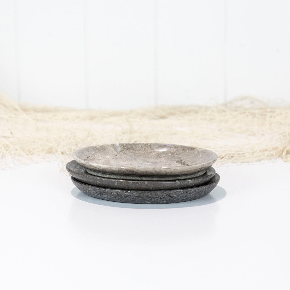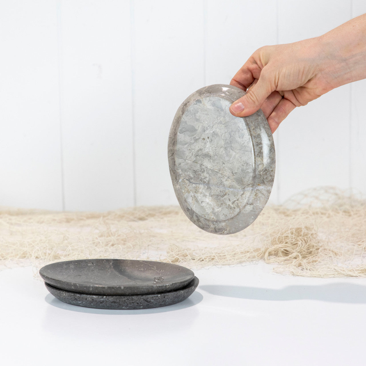 Beautiful pieces of stone have been carved and polished into a small plate.