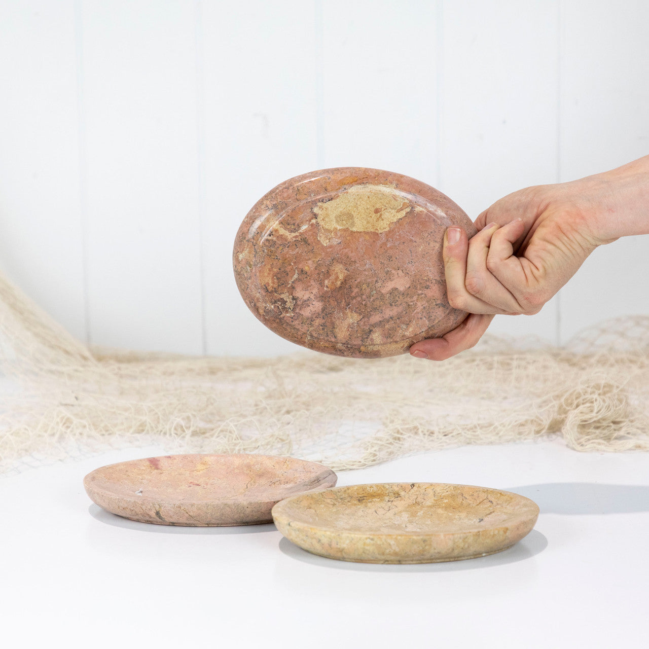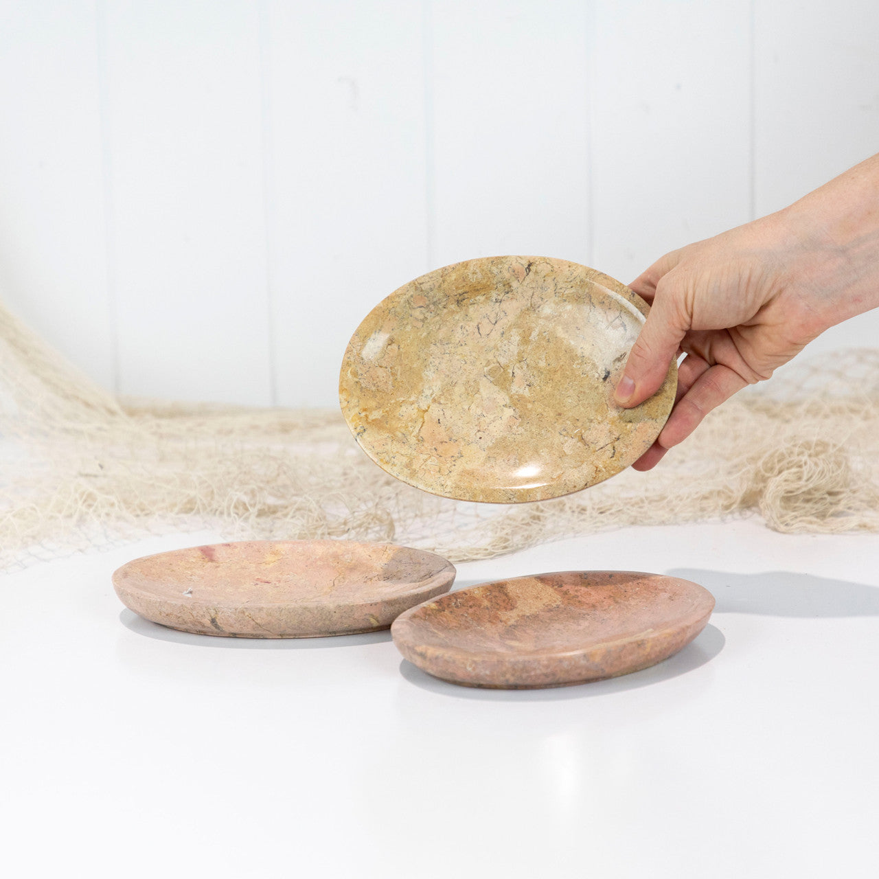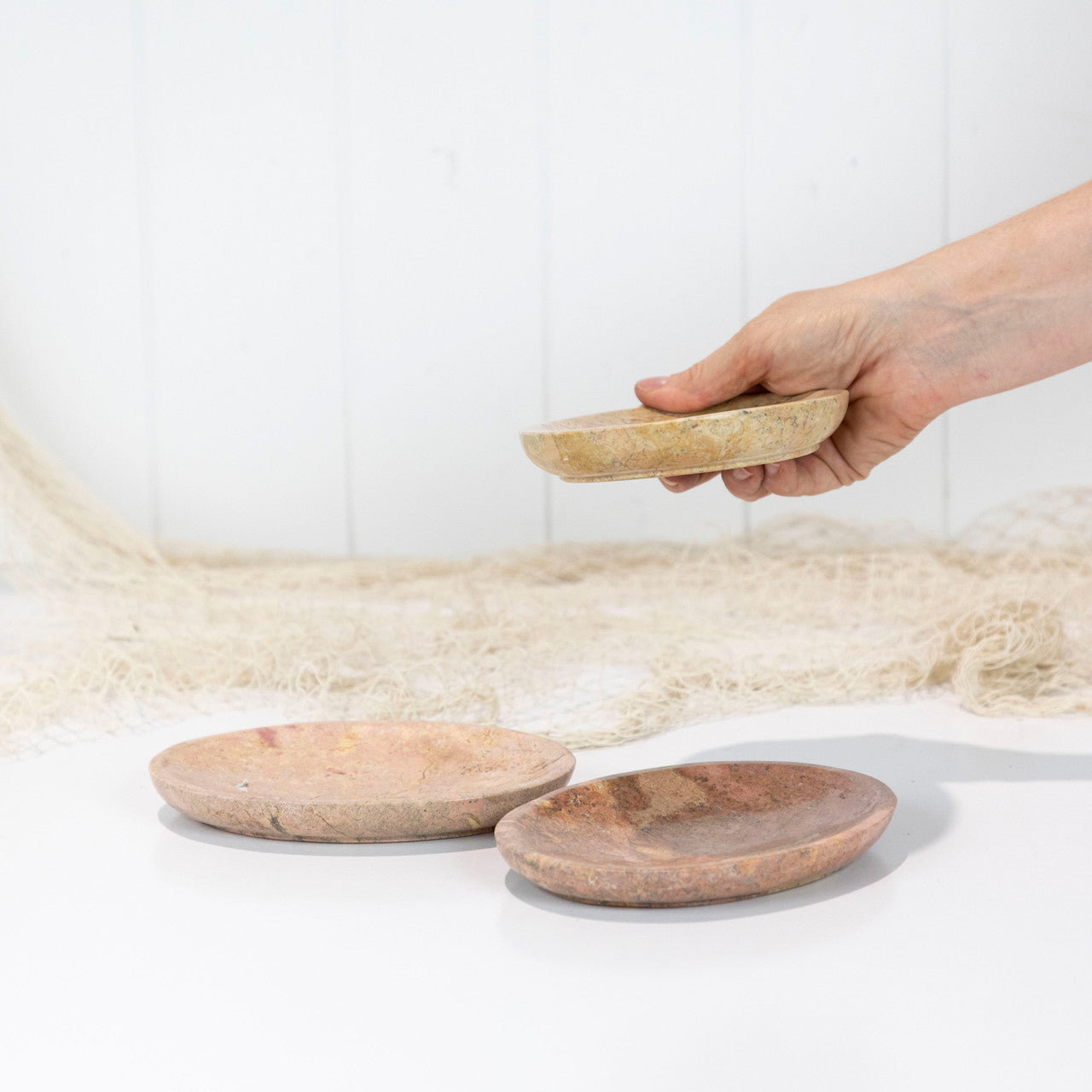 Beautiful pieces of stone have been carved and polished into a small plate.