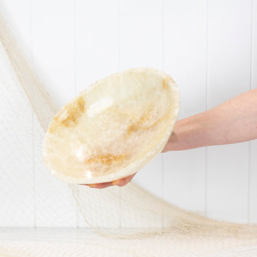 This piece of onyx has been carved and polished into a beautiful bowl.