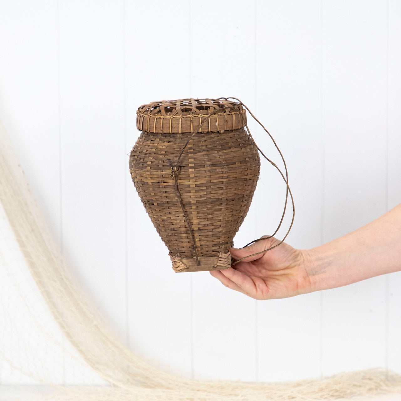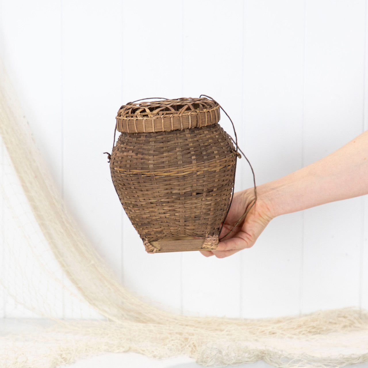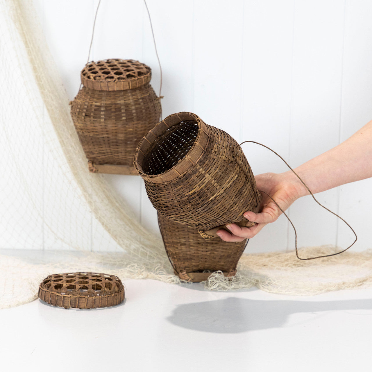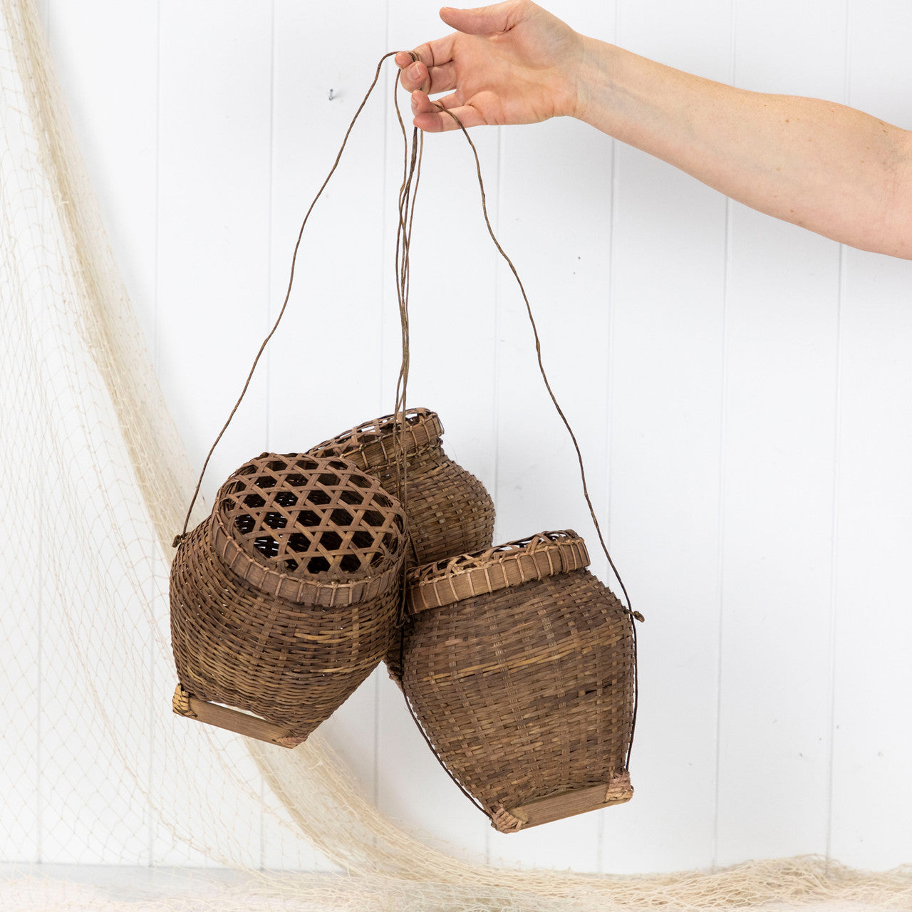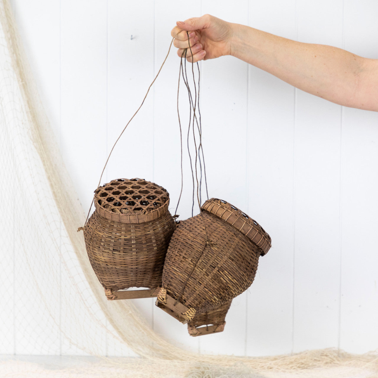 These Indonesian woven bags were used for carrying and storing bait for fishing.