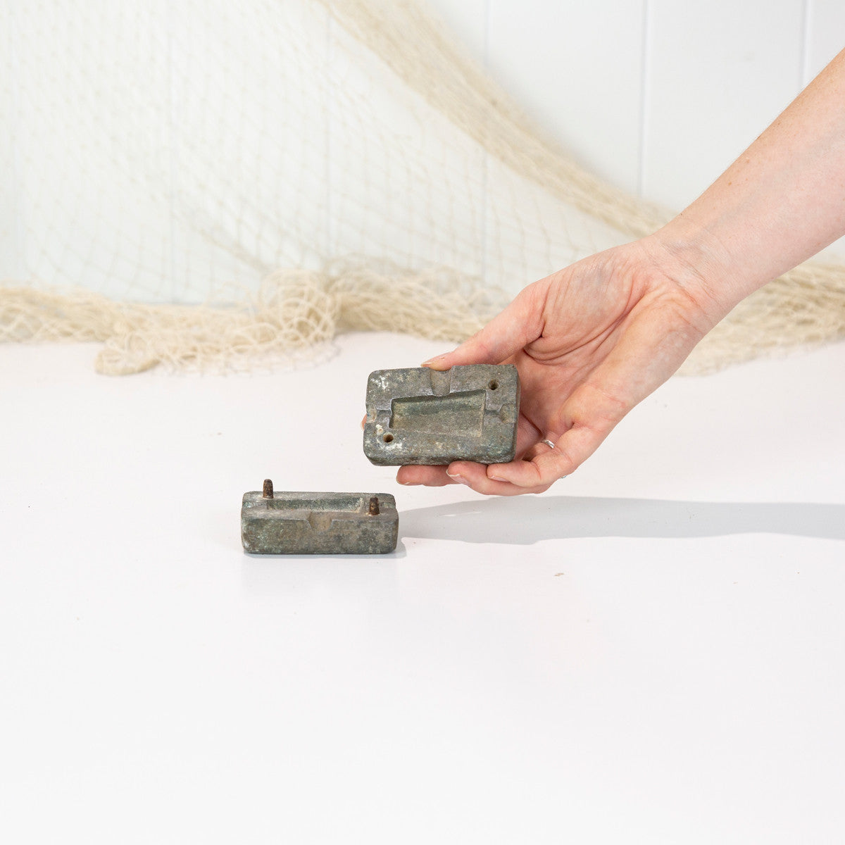 These old moulds are made from bronze, and were used to cast sinkers for fishing.