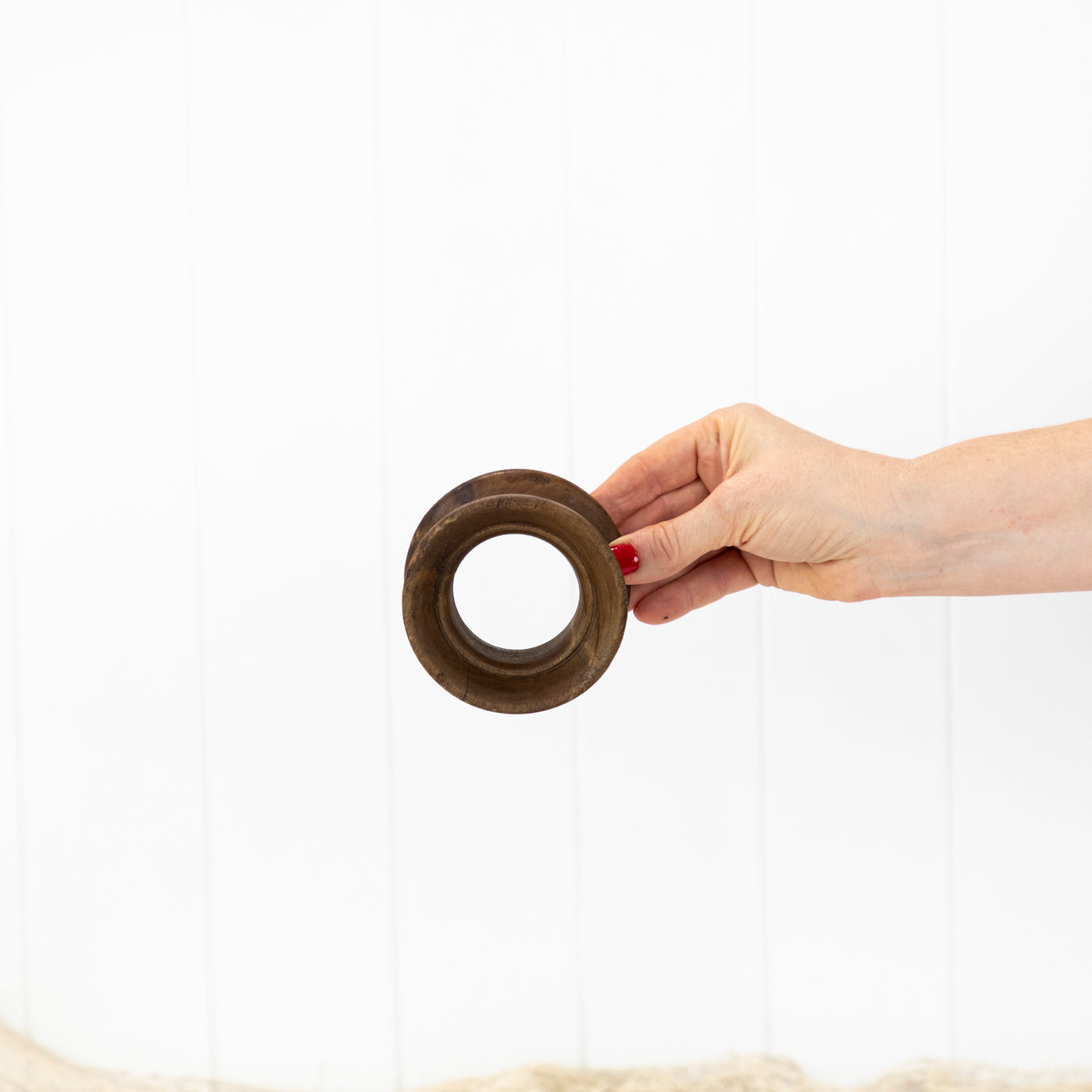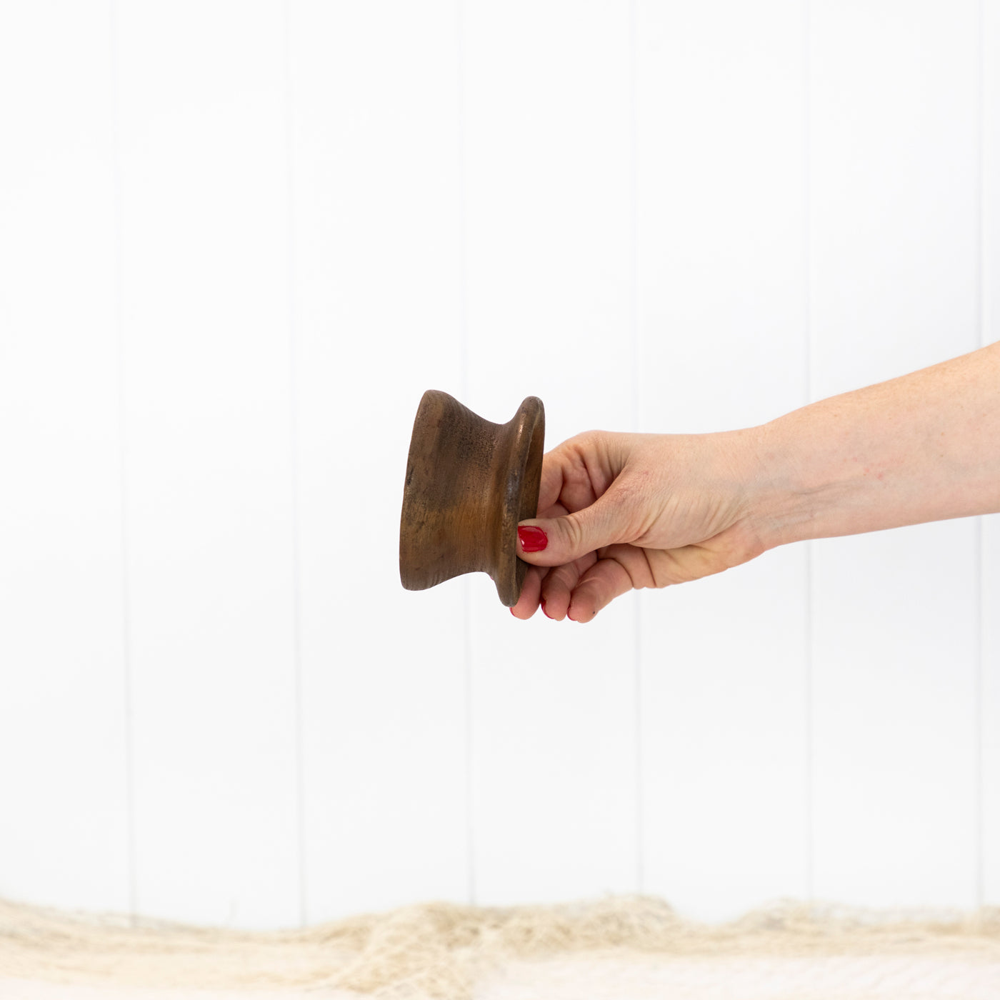 This old timber reel has been aged by years of use and exposure to sea air.