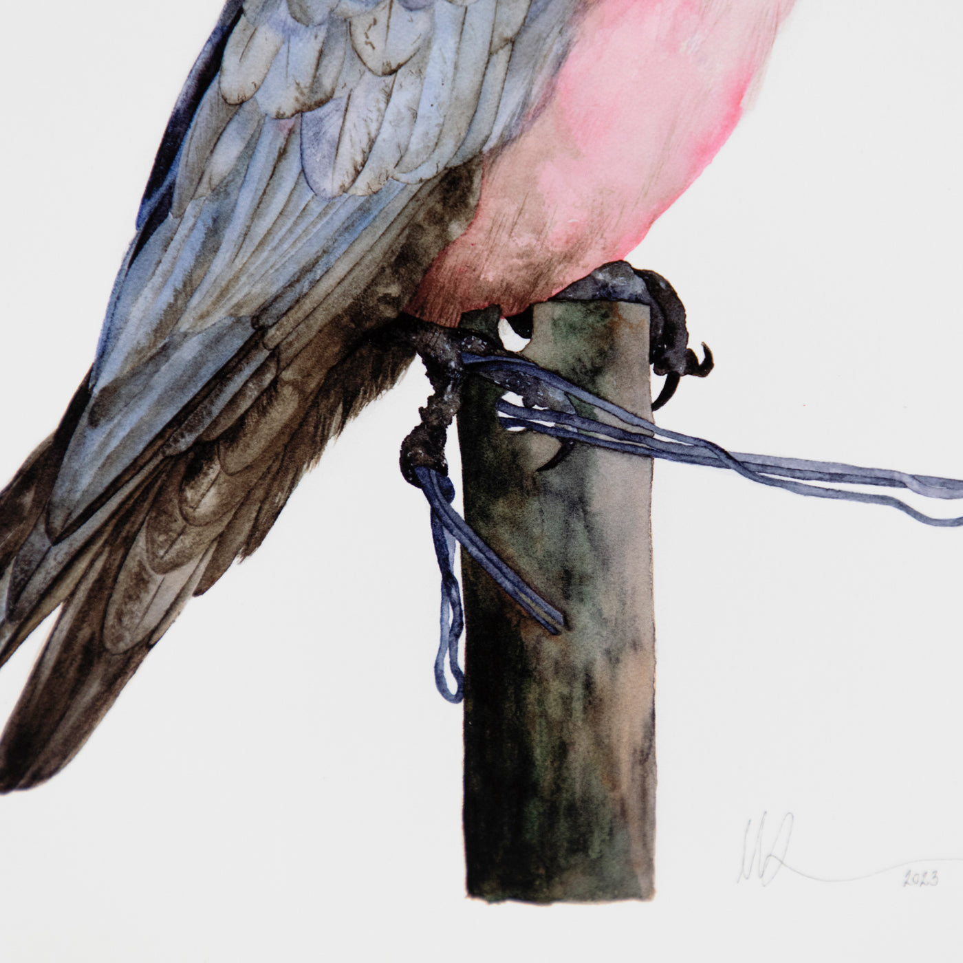 This fine art illustration of a Galah named Gladys has been created by award winning Yeppoon based watercolour artist Michelle Turner.