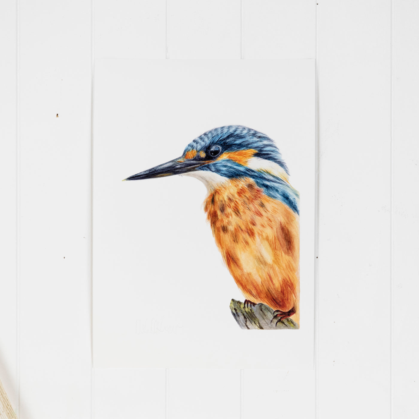 This fine art illustration of a Kingfisher named Bruce has been created by award winning Yeppoon based watercolour artist Michelle Turner.