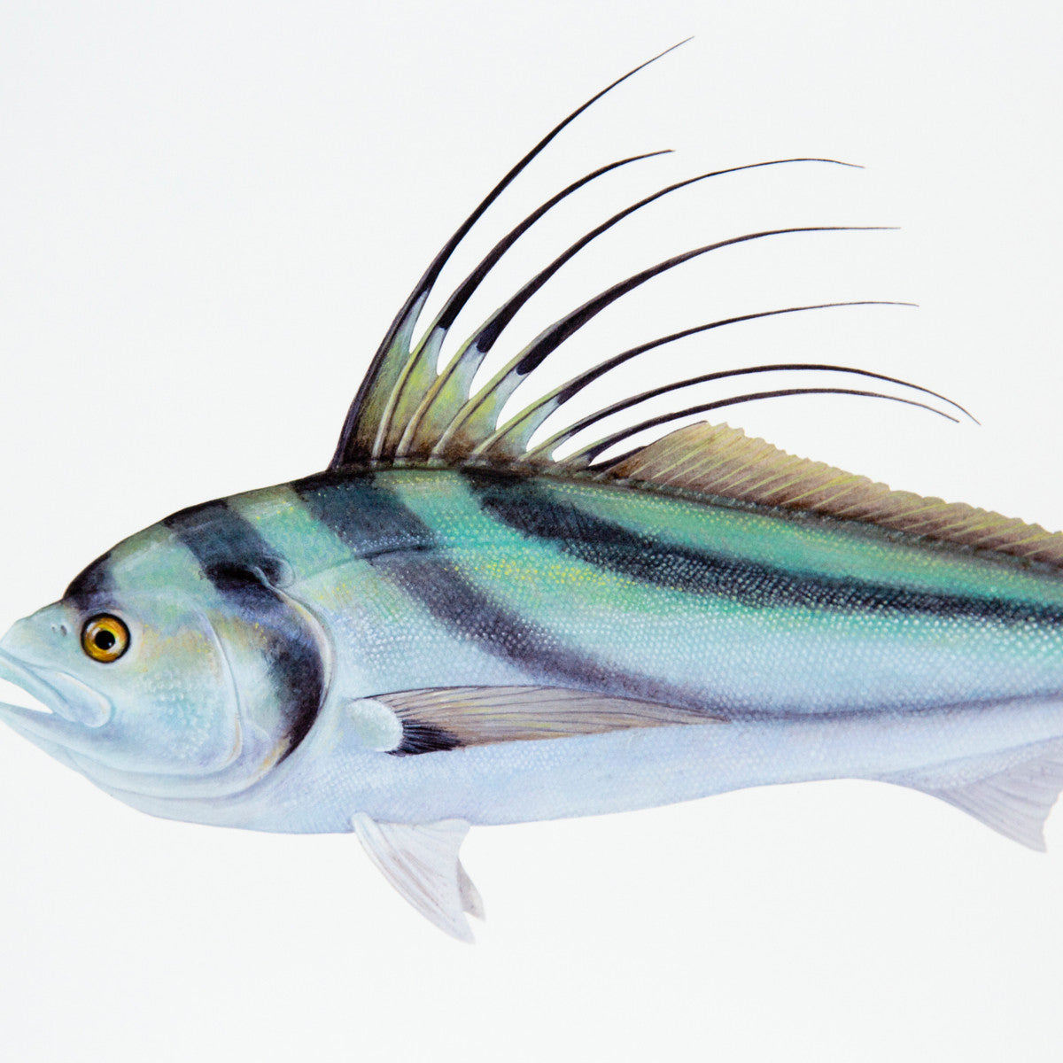 This stunning fine art illustration of a Rooster Fish has been created by Dr Lindsay Marshall, a fisheries biologist and natural history artist based here on the Sunshine Coast.