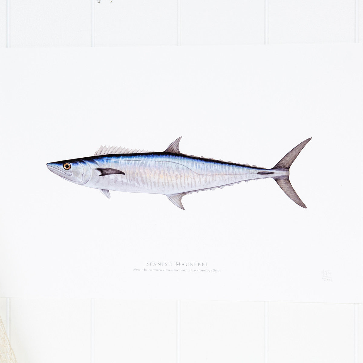 This stunning fine art illustration of a Spanish Mackerel has been created by Dr Lindsay Marshall, a fisheries biologist and natural history artist based here on the Sunshine Coast.