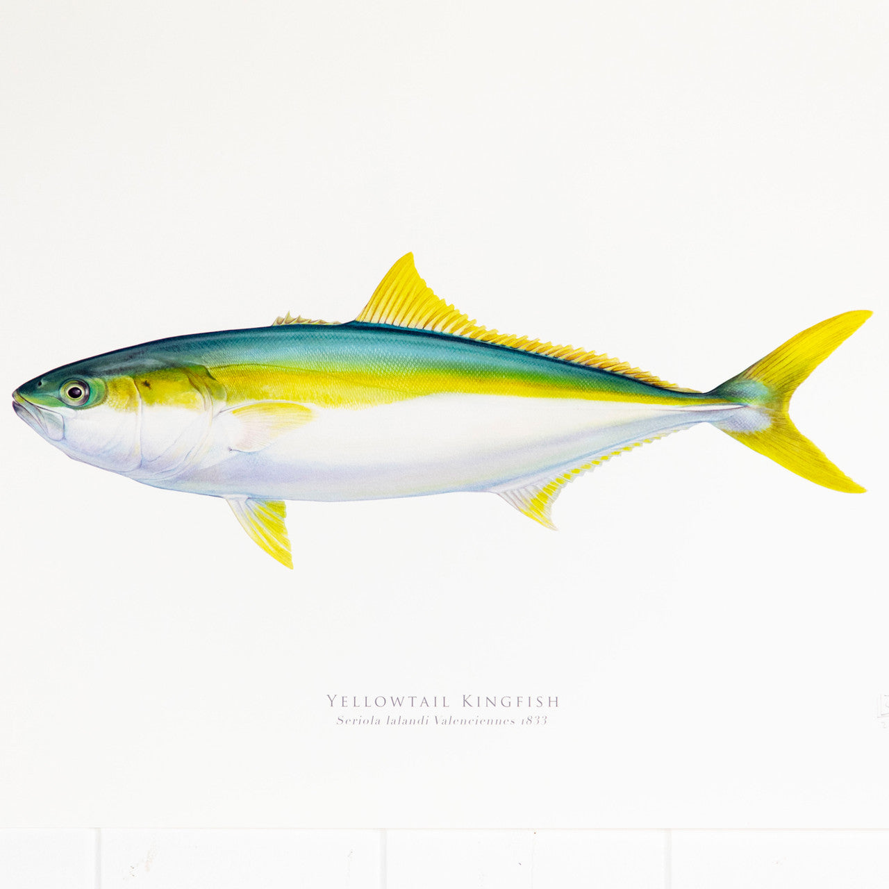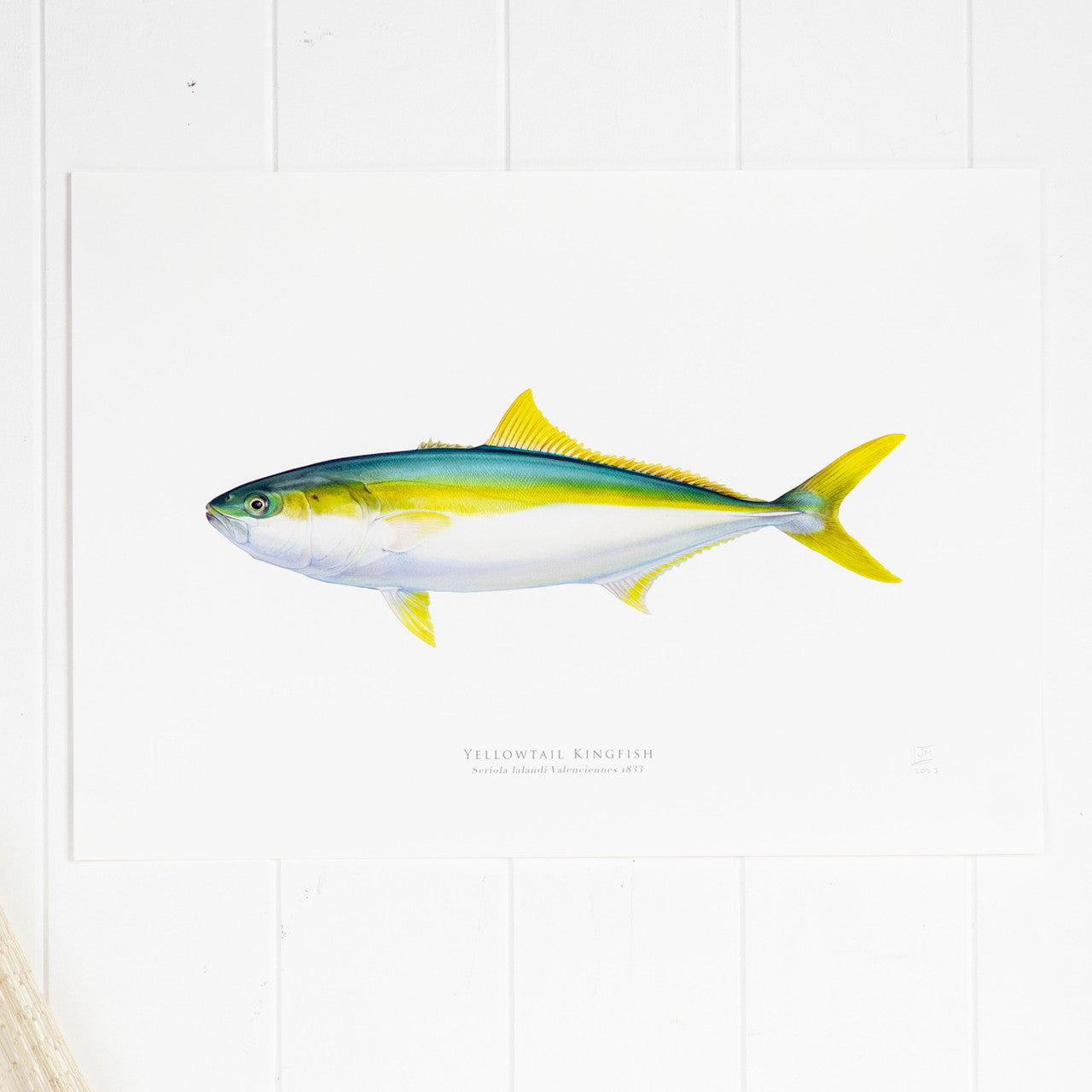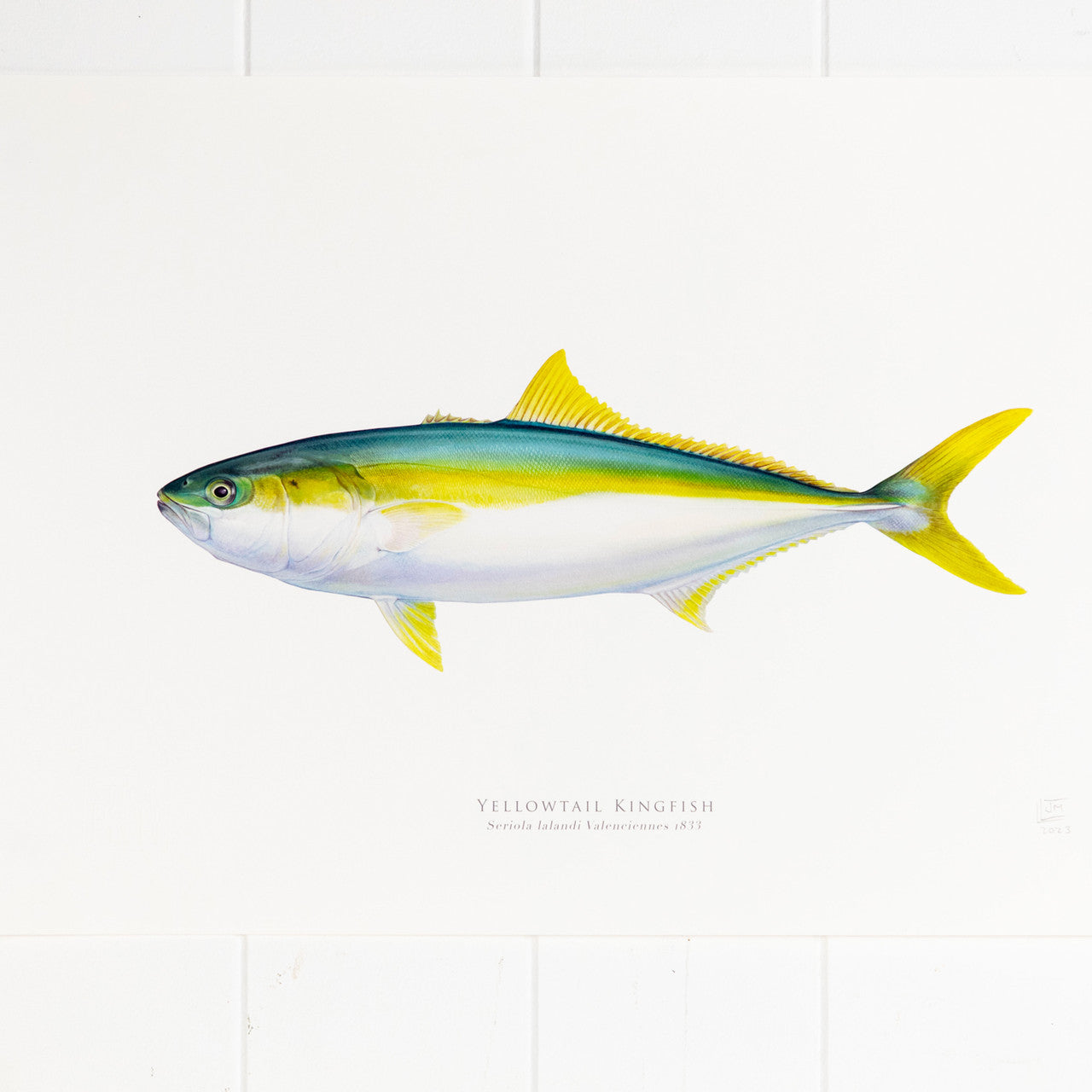 This stunning fine art illustration of a Yellowtail Kingfish has been created by Dr Lindsay Marshall, a fisheries biologist and natural history artist based here on the Sunshine Coast.