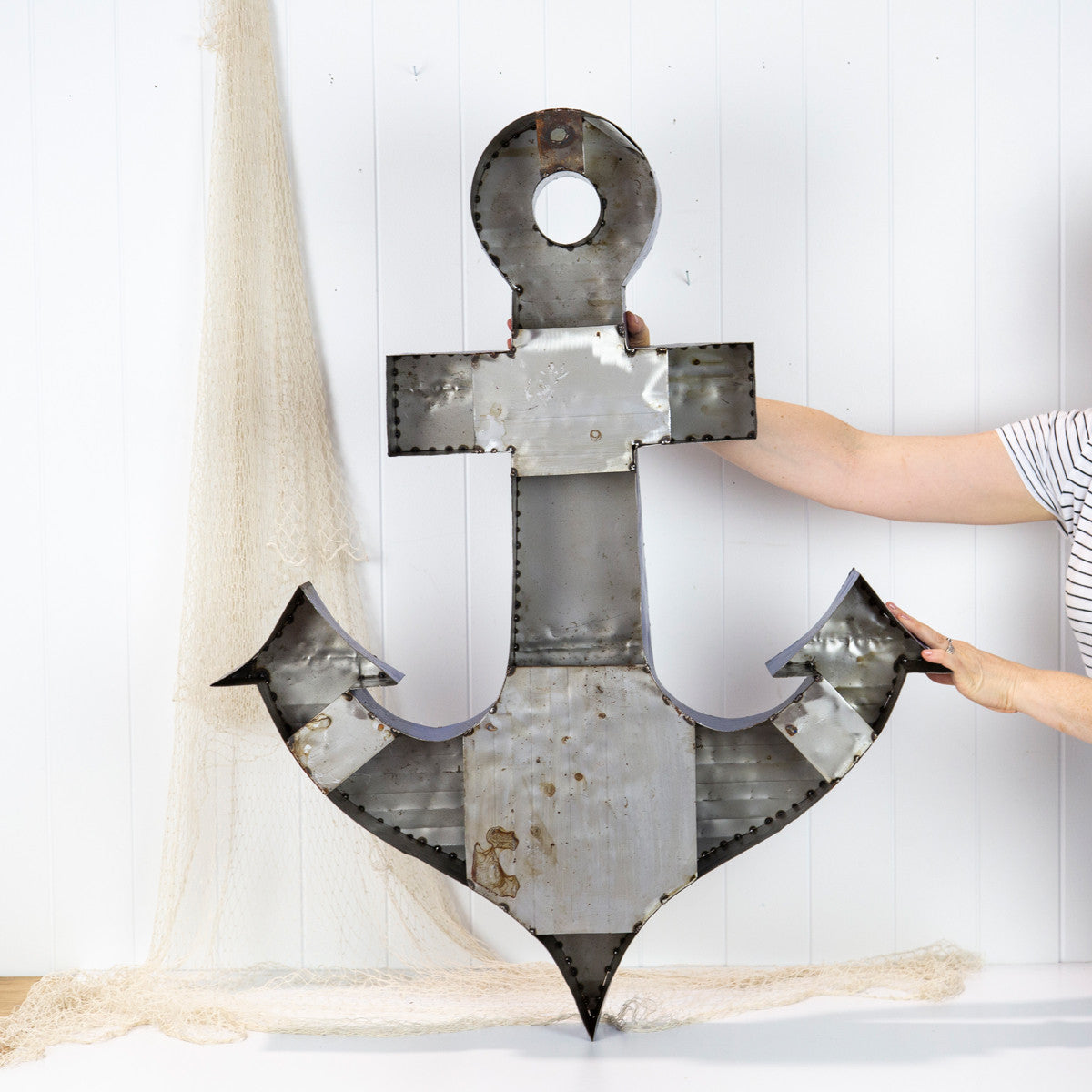 These large metal anchor has been custom made, cleverly crafted by re purposing old metal drums.