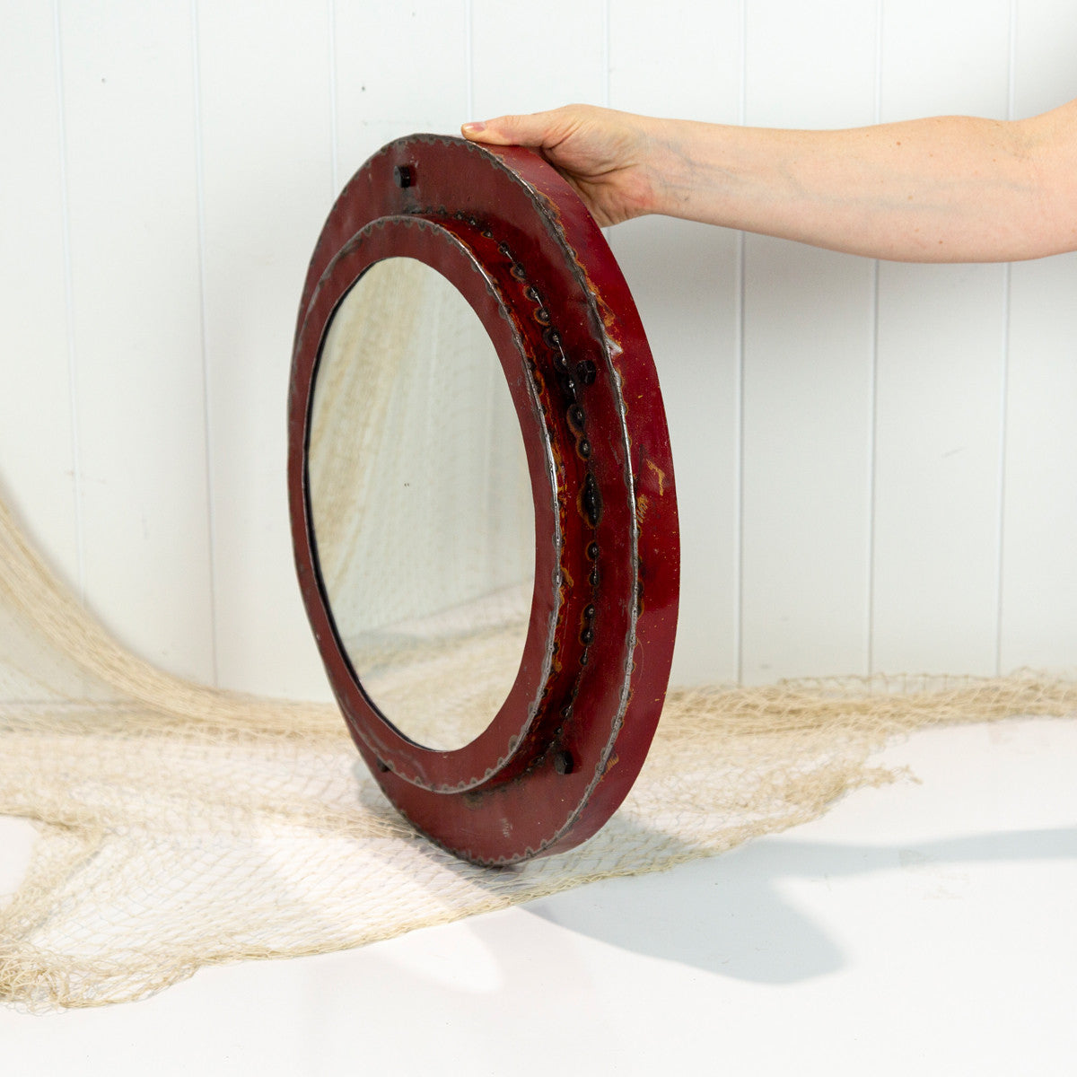 These porthole style mirrors have been custom made from repurposed metal drums.