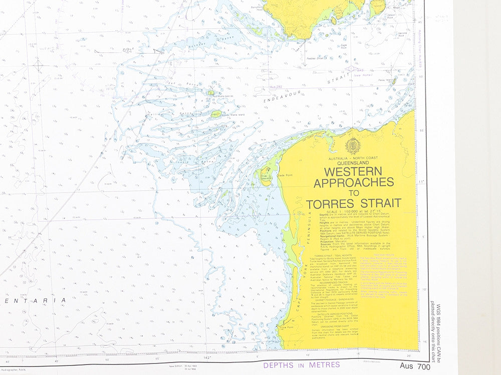 This chart/map is covers the Western Approaches to Torres Strait. A small section of the Queensland coastline can be seen.